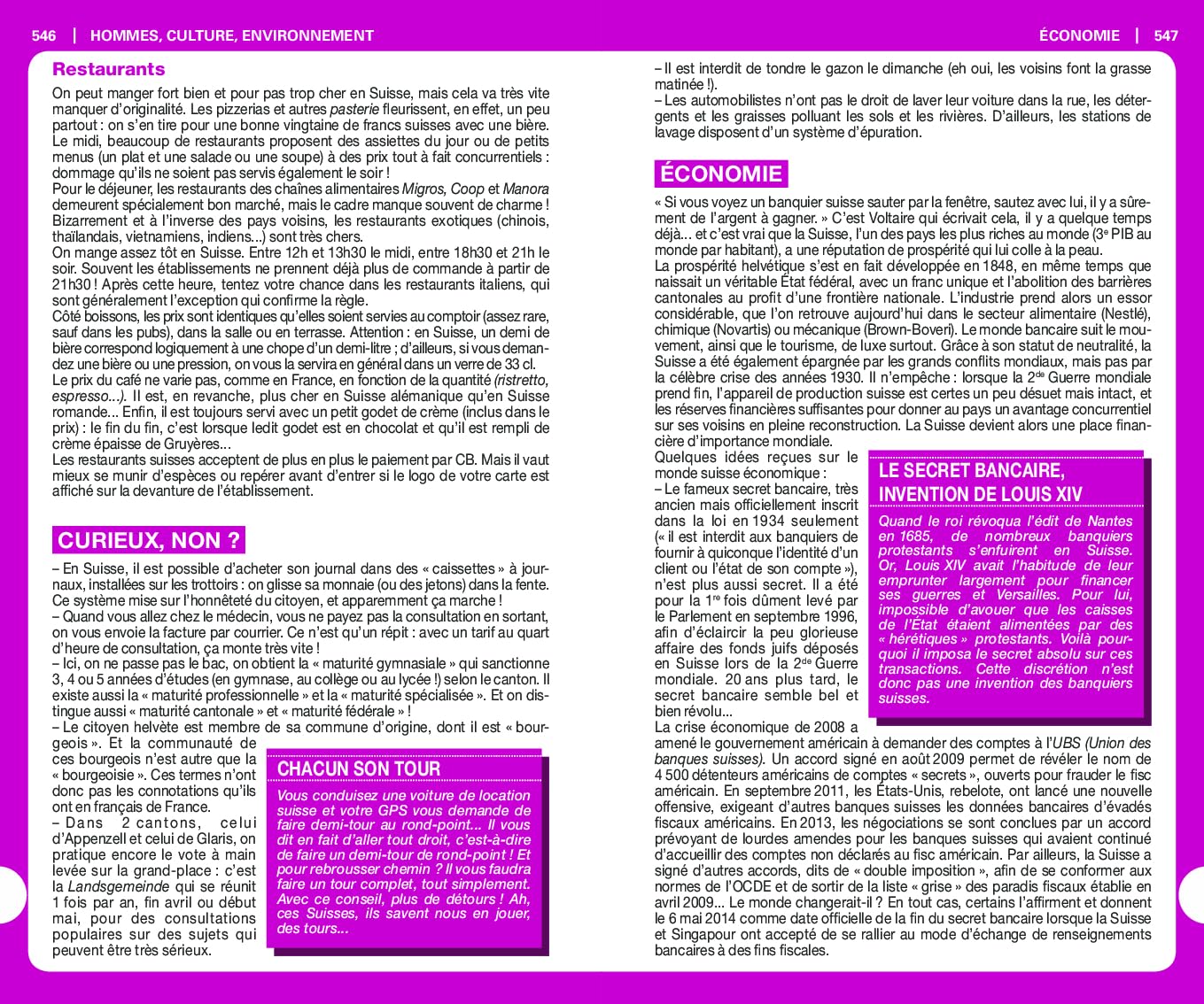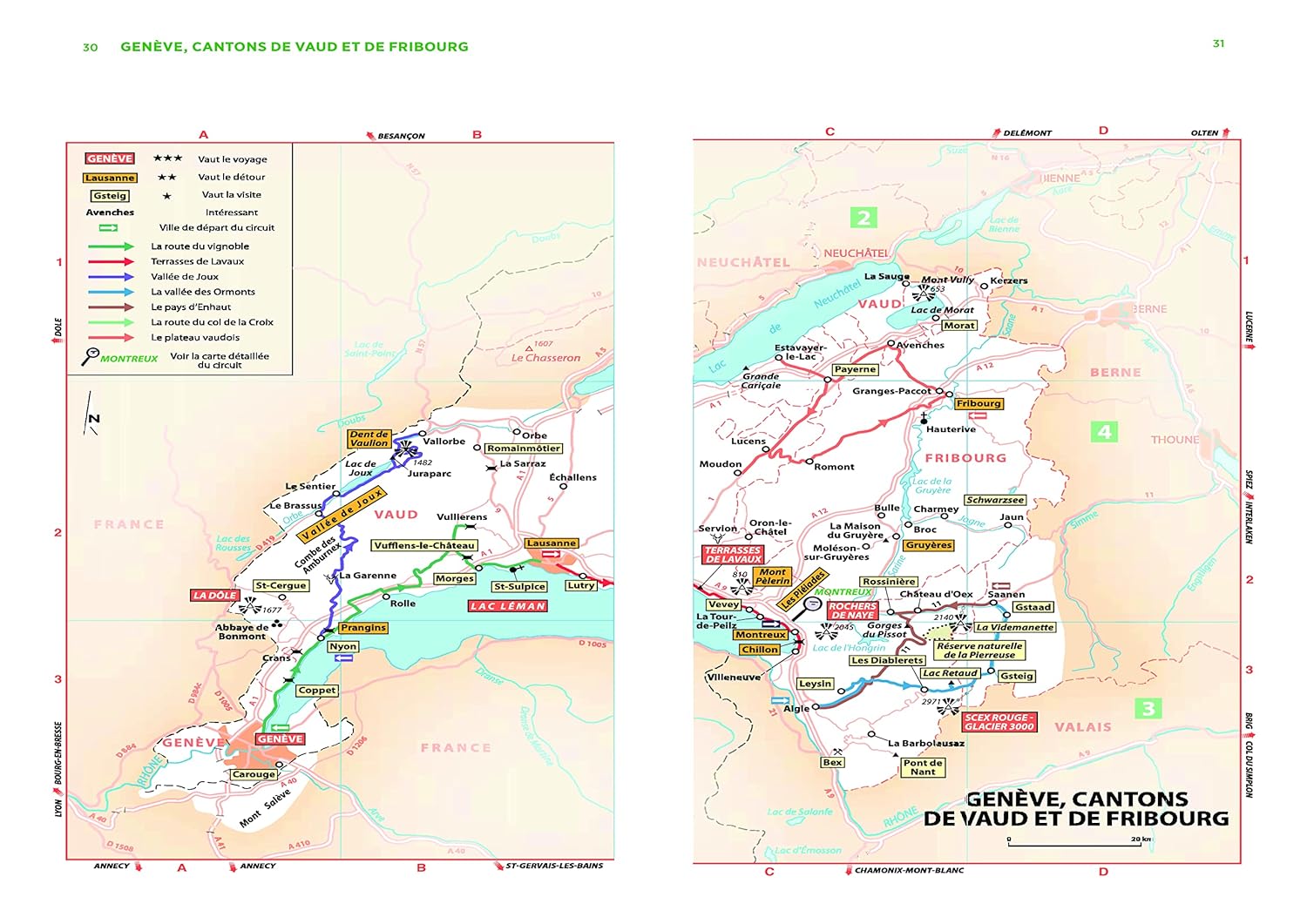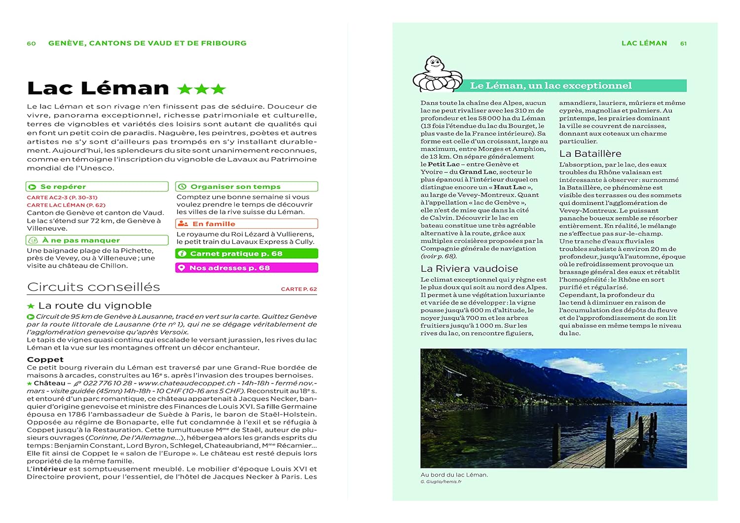 Une véritable encyclopédie pour le voyageur à destination de la Suisse, répertoriant les sites incontournables avec un système d’évaluation de 1 à 3 étoiles.