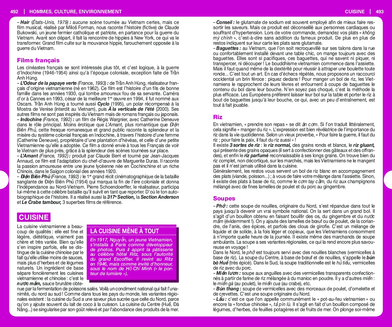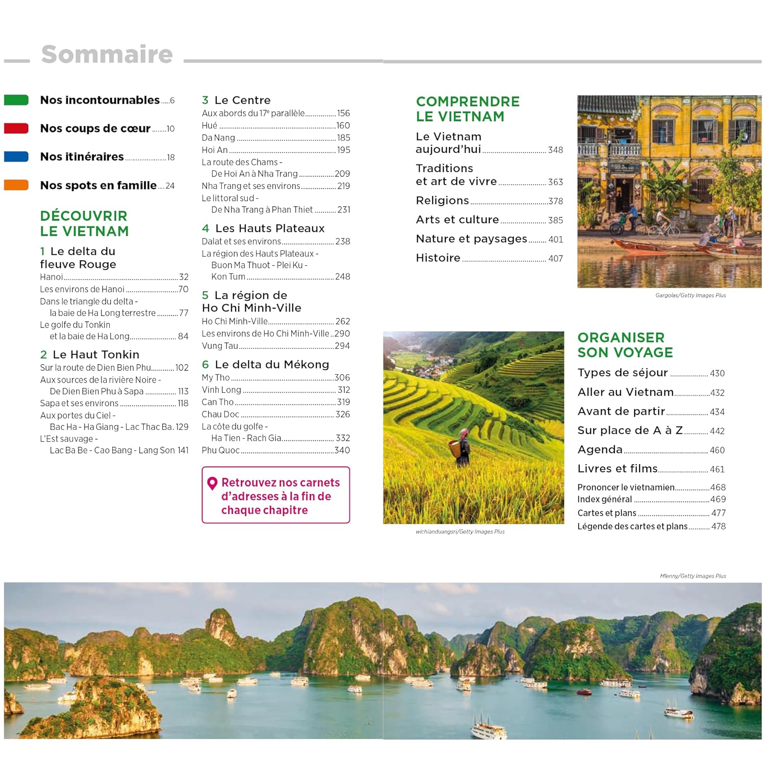 Un guide qui nous convie à découvrir les multiples facettes du Vietnam. On y retrouve les attraits touristiques phares du pays, comme les ruelles pittoresques du quartier des 36 rues et corporations de Hanoï, la baie d’Ha Long et ses bateaux-hôtels ou le verdoyant delta du Mékong.