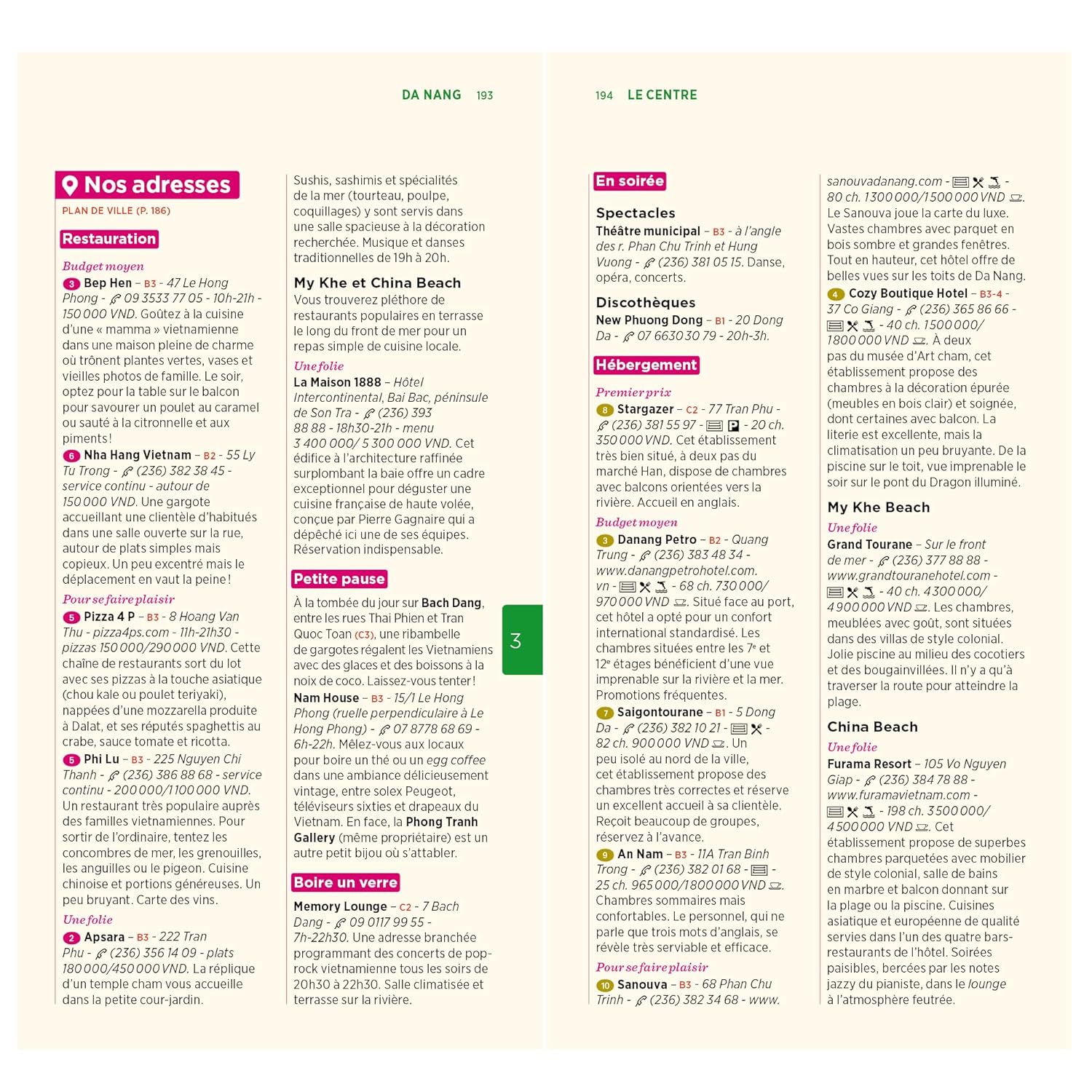 Les incontournables que sont la cité impériale de Huê, le quartier historique de Hanoï ou encore la bouillonnante Hô Chi Minh-Ville sont également décrits avec soin. Enfin, plus de 60 cartes et plans détaillés vous permettront de repérer rapidement les meilleures adresses.