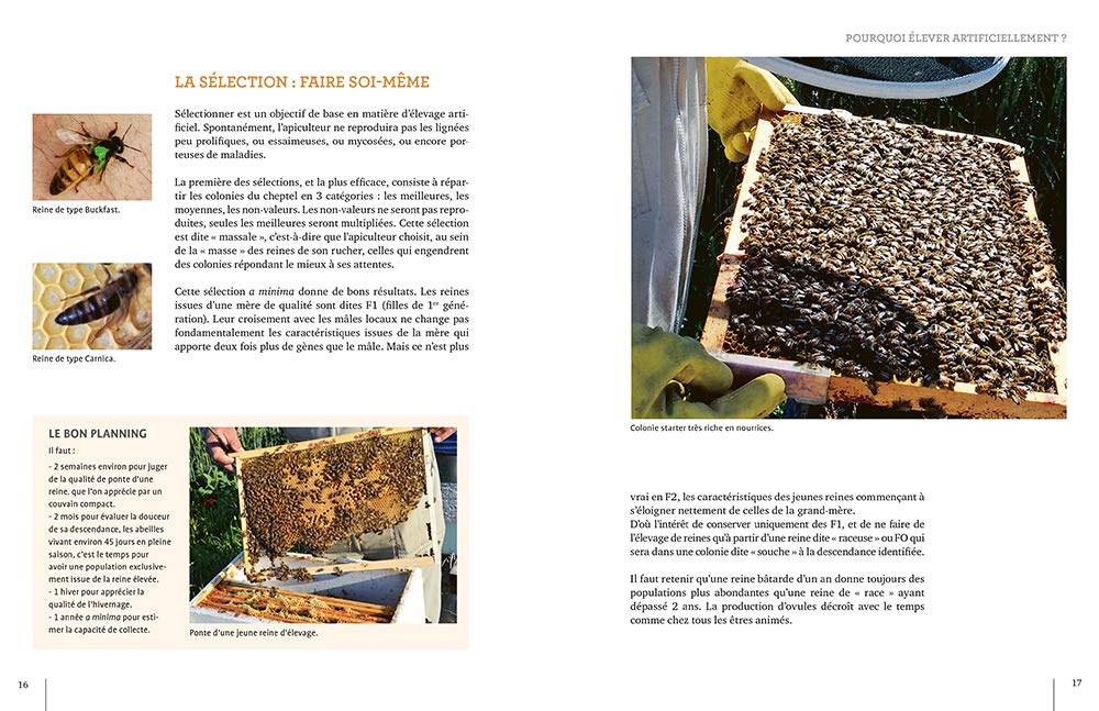 - De nombreux conseils pratiques sur l’élevage des reines, les soins et traitements, la législation, les précautions sanitaires, les risques à éviter…