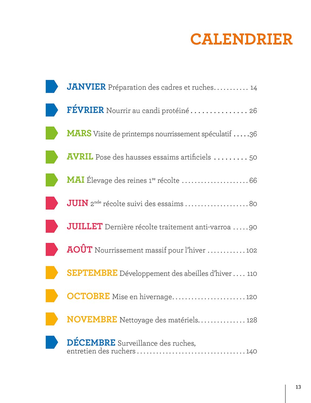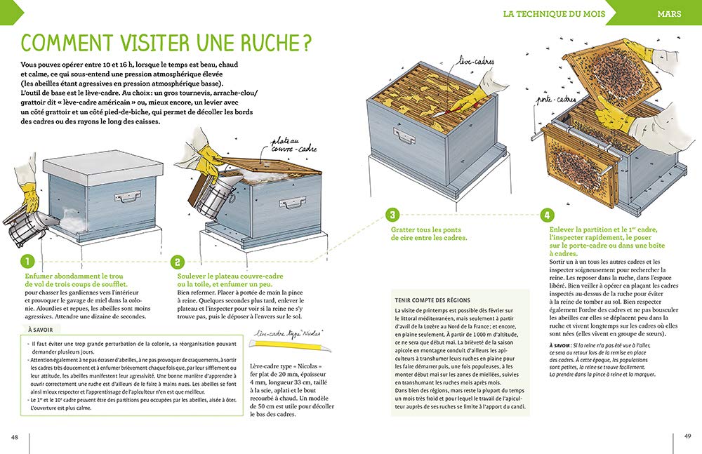 Accessible à tous, illustré de nombreuses photos et de dessins techniques, cet ouvrage propose toutes les informations nécessaires à l’apiculteur pour conduire facilement son rucher de janvier à décembre. Sont indiqués pour chaque mois de l’année :