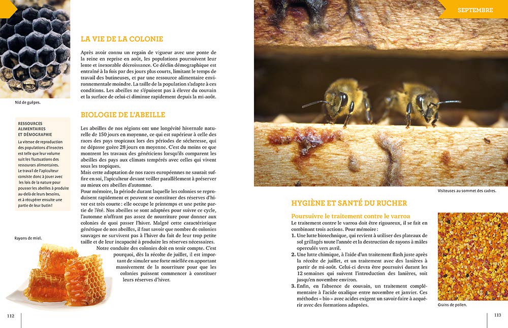 Les 800 photos, dessins, schémas en couleurs réjouiront tous les passionnés des abeilles, qu’ils découvrent le monde fascinant de la ruche ou qu’ils souhaitent approfondir ou même professionnaliser leur pratique.