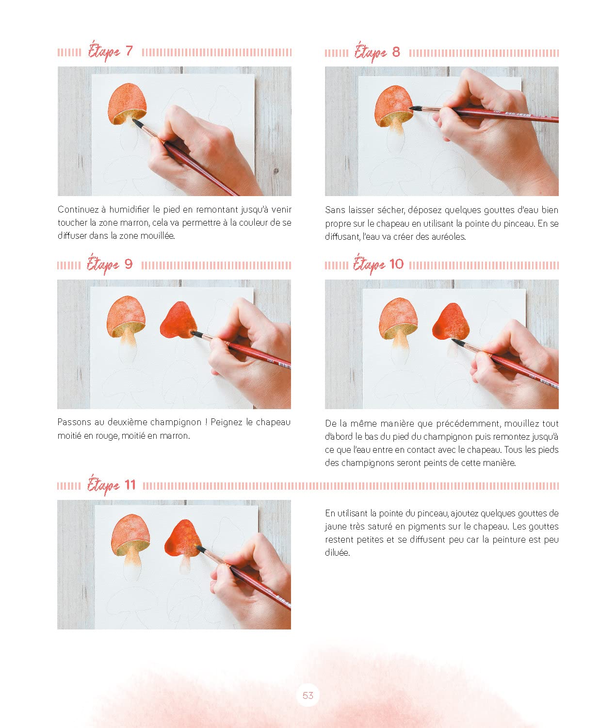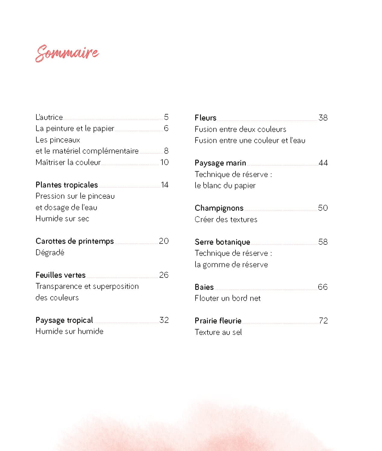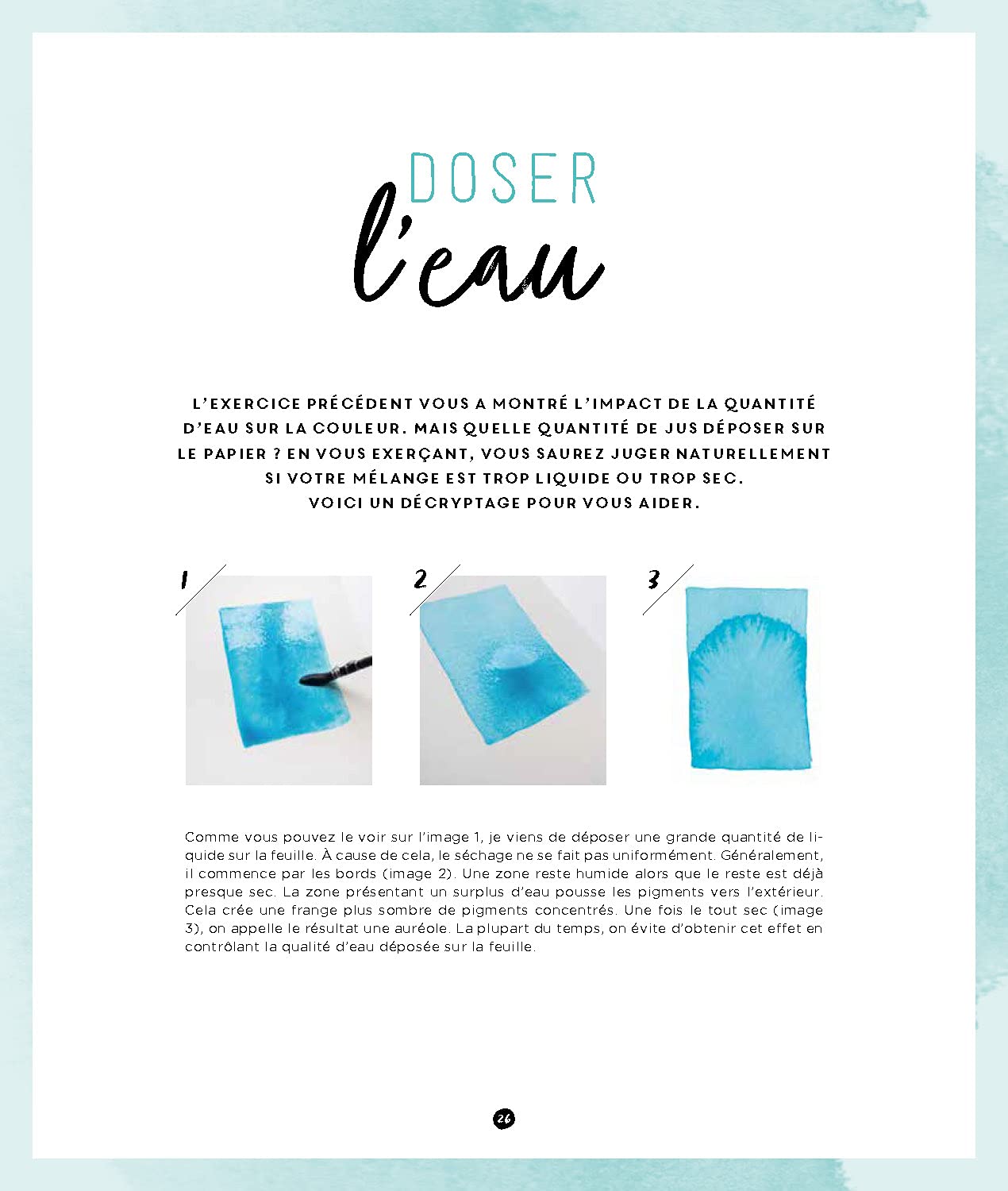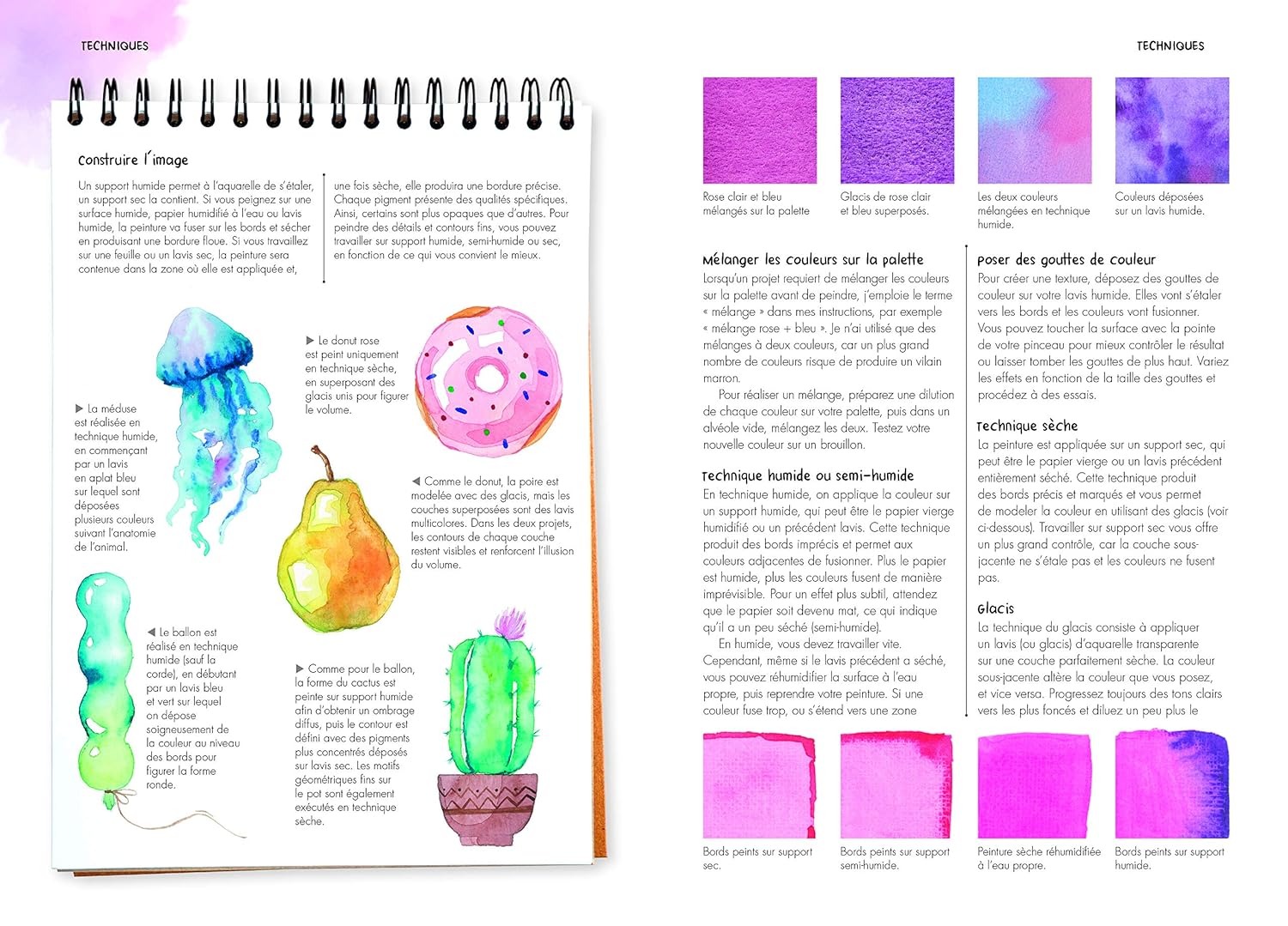 Quand on possède la technique, tout est possible : peindre un dégradé parfait, contrôler la fusion des couleurs, jouer avec l’humidité du papier, créer des textures variées… Pour maîtriser pleinement ces divers procédés, il faut les aborder étape par étape.