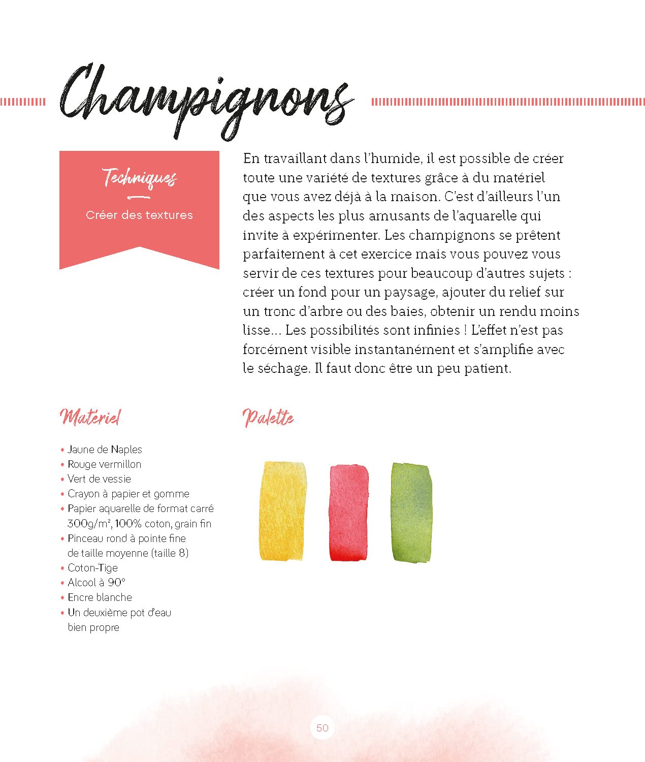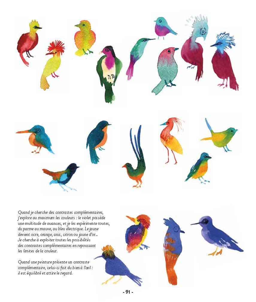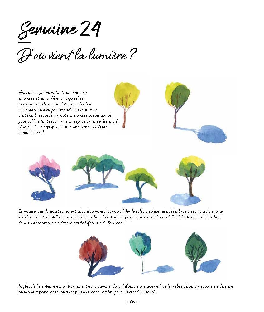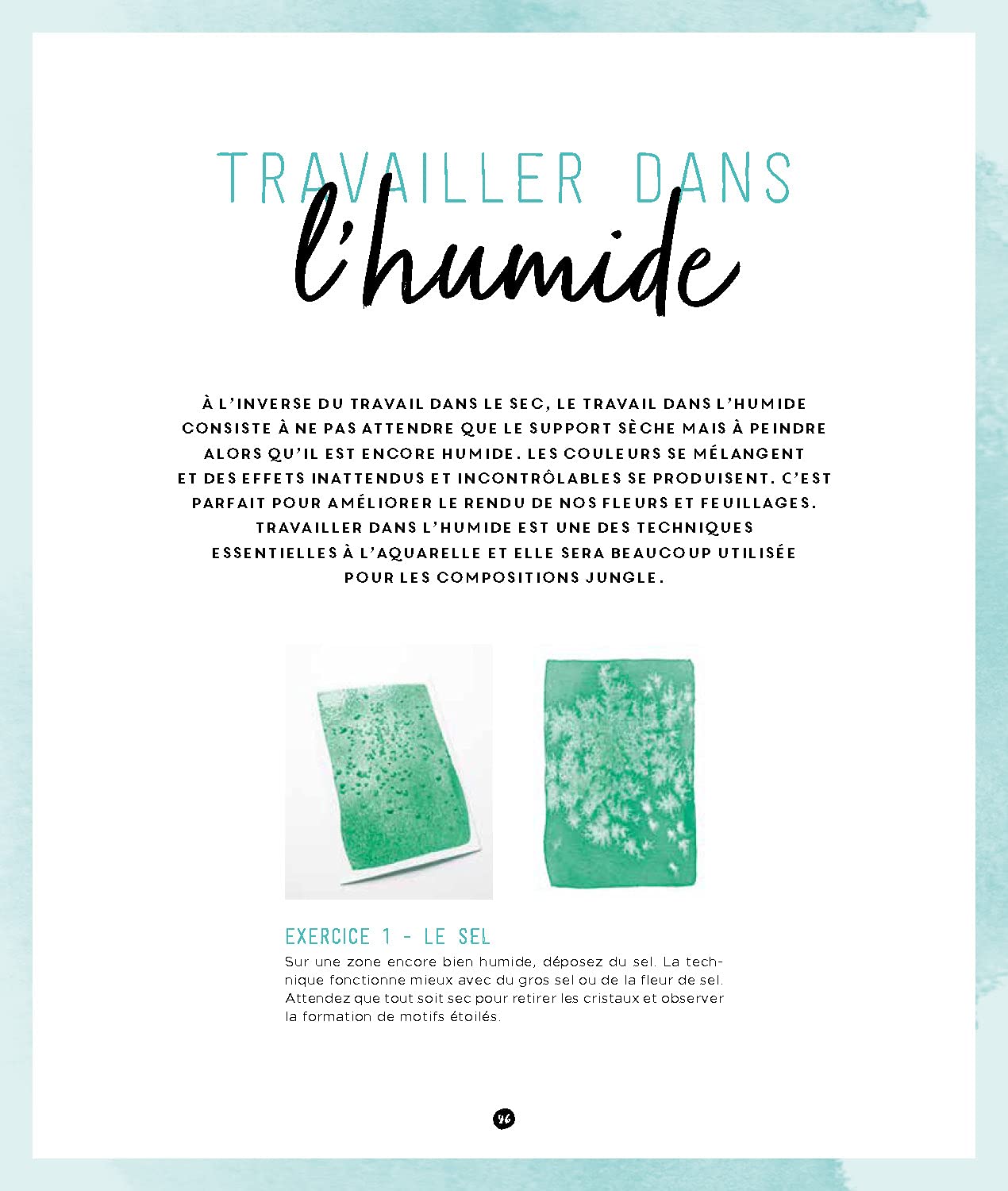 Vous y découvrirez aussi toutes sortes d’astuces pour obtenir certains effets, par exemple en utilisant les propriétés du papier absorbant ou en jouant sur la quantité d’eau utilisée. Fleurs, animaux et autres paysages ne tarderont pas à prendre vie sous votre pinceau !