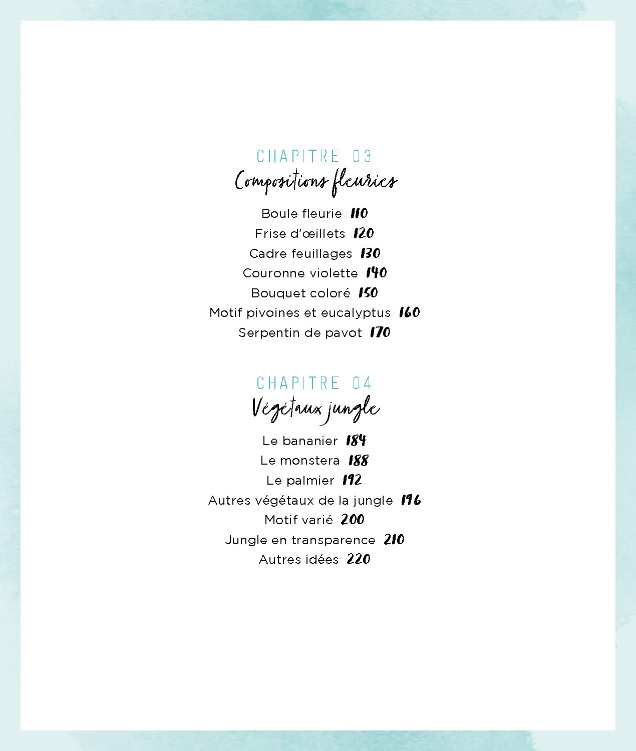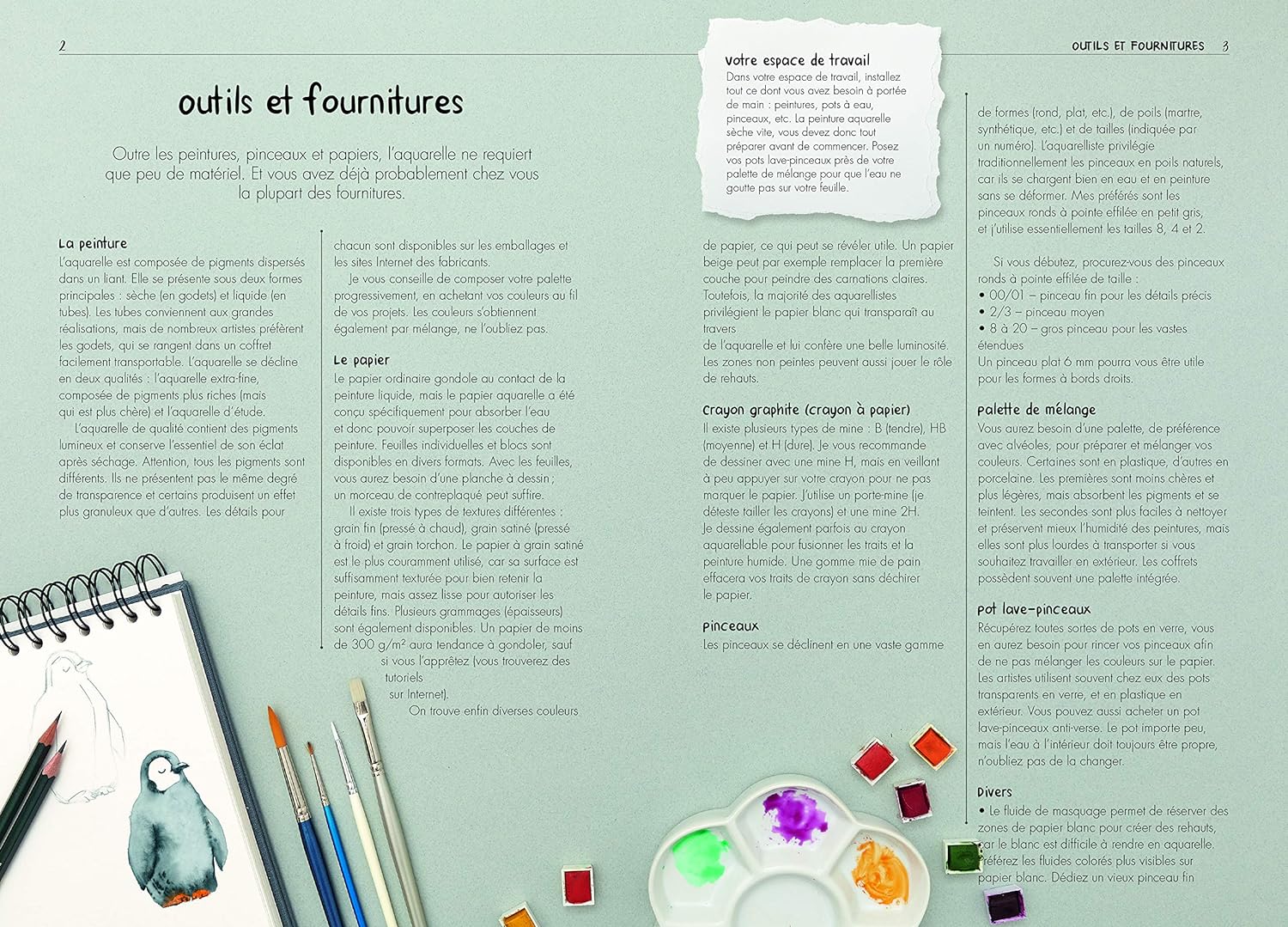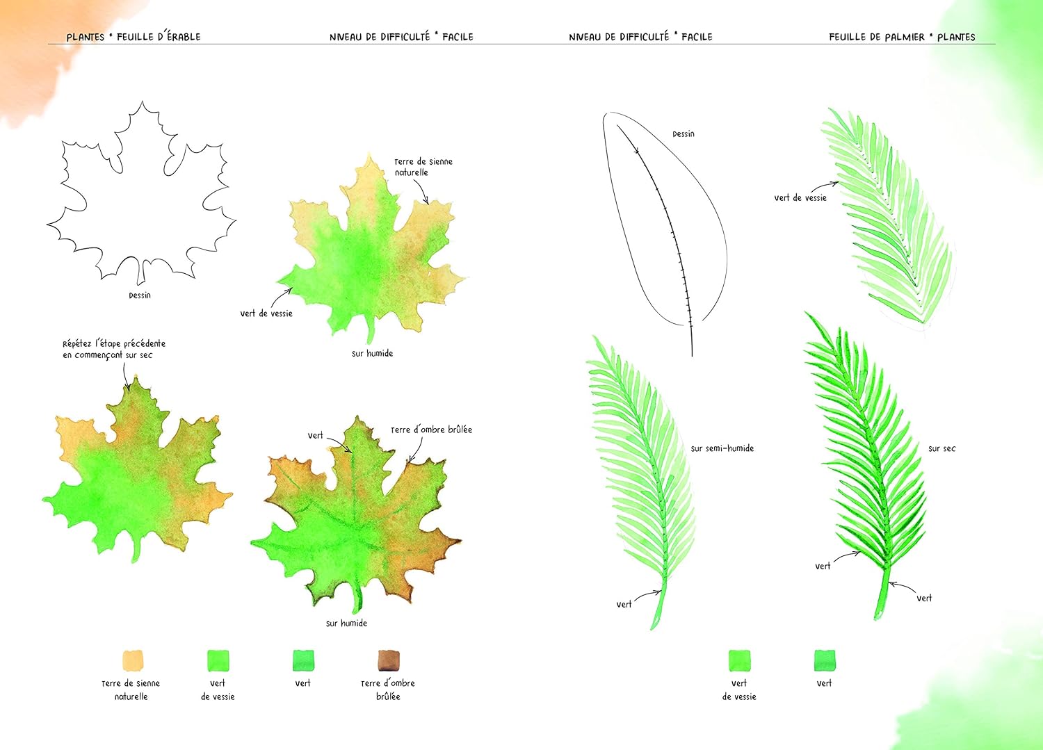 Vous y découvrirez aussi toutes sortes d’astuces pour obtenir certains effets, par exemple en utilisant les propriétés du papier absorbant ou en jouant sur la quantité d’eau utilisée. Fleurs, animaux et autres paysages ne tarderont pas à prendre vie sous votre pinceau !