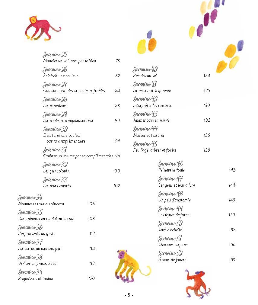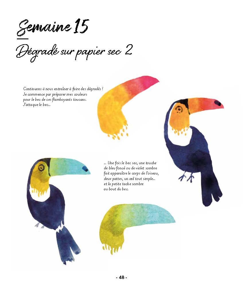 Chaque semaine, un nouvel univers à découvrir et des explications pas à pas vous permettront d’expérimenter de nouvelles techniques. Pas moins de 52 univers et 26 illustrations approfondies étape par étape pour progresser en prenant chaque fois plaisir à peindre !