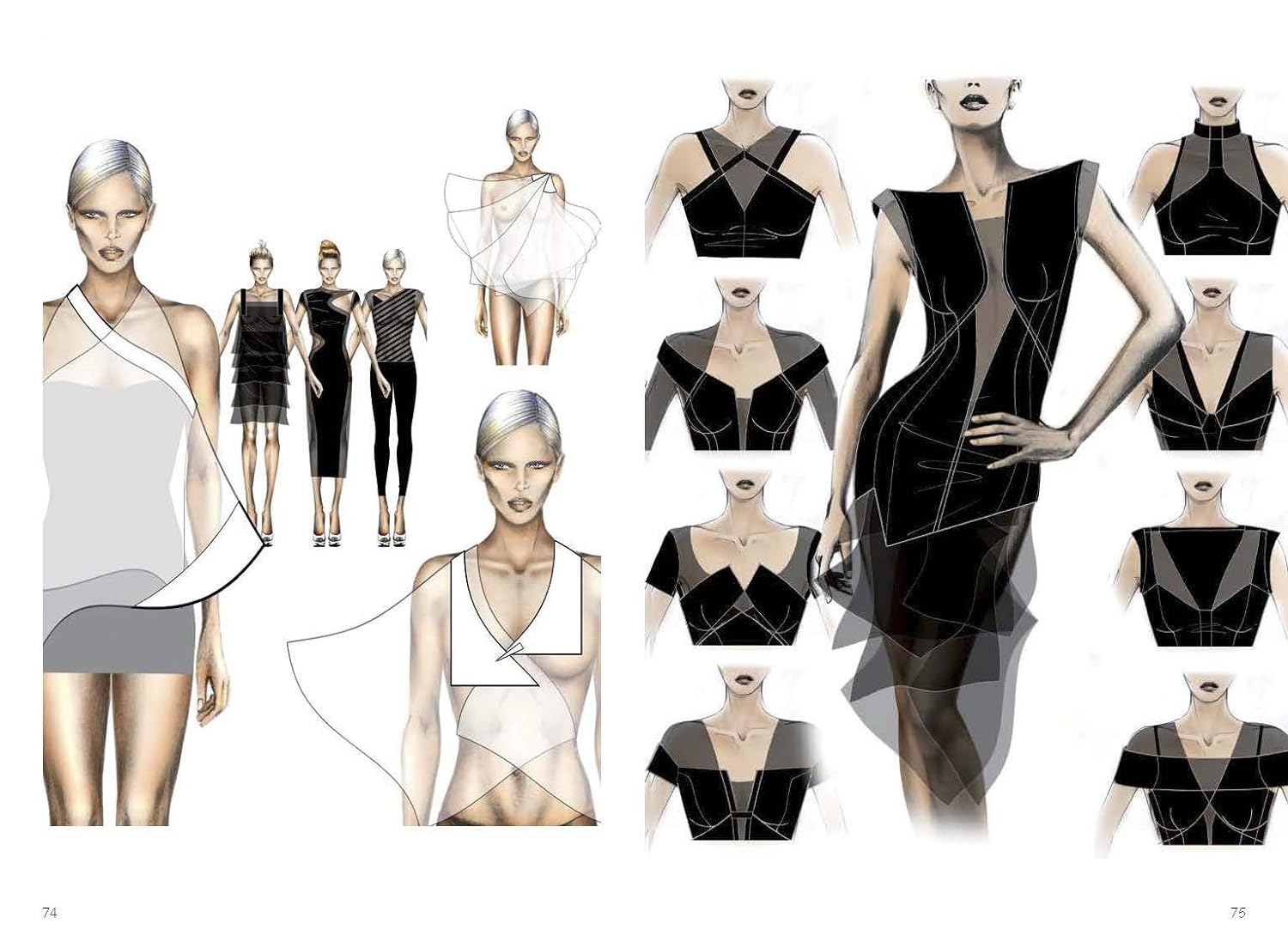 Ce tutoriel de création écrit par Daniela Brambatti, principale illustratrice chez Versace, est une idée du couturier Flavio Marconi qui, impressionné par son style et la précision avec laquelle elle capte le mouvement du tissu sur le corps, l’a convaincue de publier son travail. Ici, Brambatti révèle son style original et innovant, à mi-chemin entre l’esquisse de mode et l’illustration.
