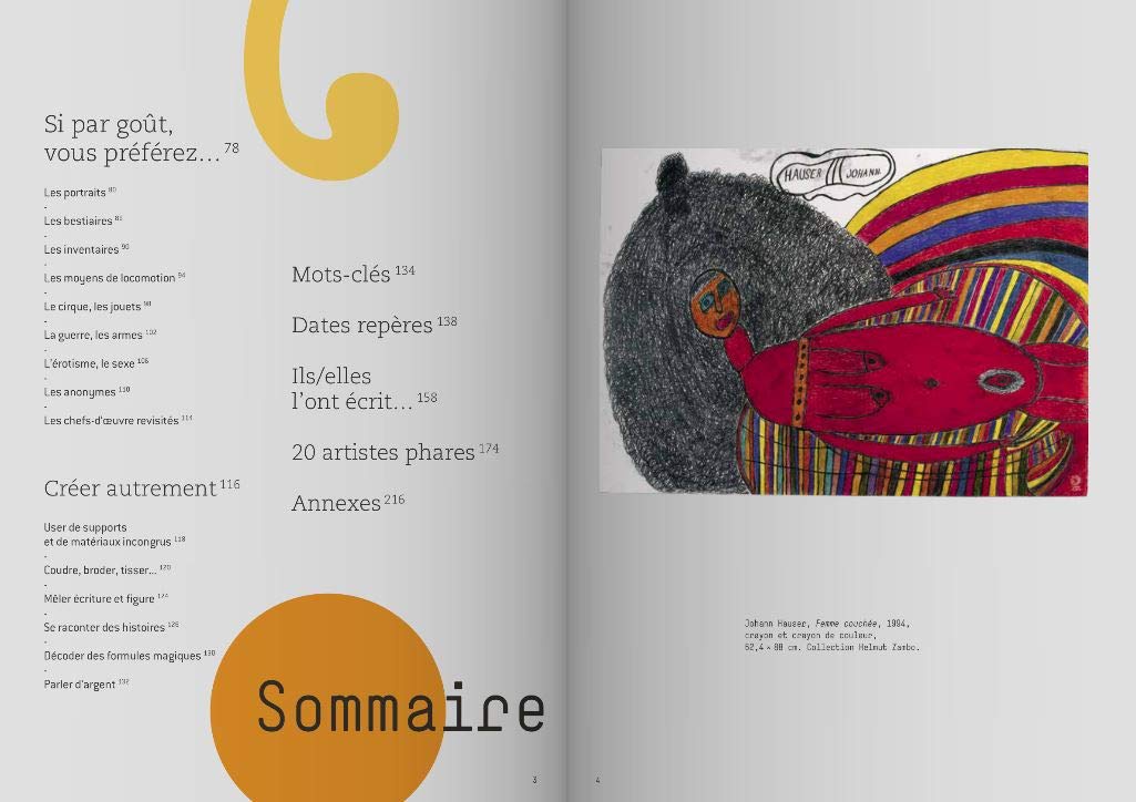 Les 500 œuvres reproduites, issues pour l’essentiel de la collection de Dubuffet mais également de grandes collections internationales, conservent intacts leur pouvoir de fascination et leur liberté subversive – qui ont inspiré de nombreux artistes contemporains comme Georg Baselitz, Annette Messager, Jean Tinguely, Niki de Saint Phalle, Hervé Di Rosa ou Thomas Hirschorn.