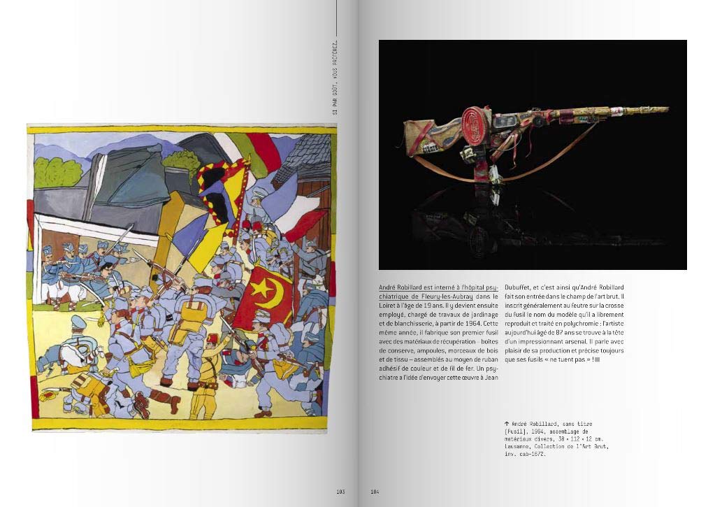 Cet ouvrage raconte l’incroyable épopée d’une création absolument autodidacte, dont les auteurs furent considérés tour à tour comme des fous illuminés, des originaux débridés et, finalement, des artistes à part entière, qui inspirent nombre de créateurs actuels. Longtemps ignorée, nommée « art brut » par Jean Dubuffet en 1945, elle prend aujourd’hui le chemin de la reconnaissance : des dessins, peintures, sculptures, assemblages, photographies, broderies réalisés par « des personnes indemnes de culture artistique » sont désormais exposés dans des lieux institutionnels : le LAM à Villeneuve d’Ascq, la Collection de l’art brut à Lausanne, la Halle Saint-Pierre à Paris…
