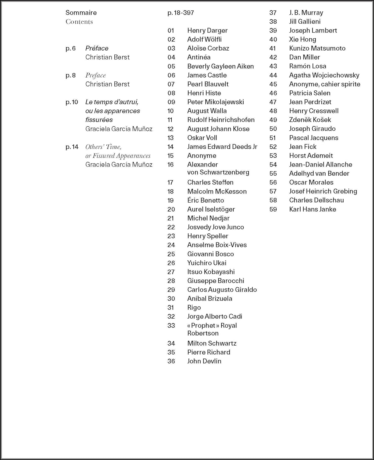 Ce livre raconte la grande histoire de l’art brut, des artistes qui ont marqué son succès à travers l’artefact artistique du livre. Ces œuvres couvrent la période du début du 20ème siècle à nos jours et incluent les travaux de Horst Ademeit, Alöise, Giovanni Bosco, James Castle, Henry Darger, Charles Dellschau, Malcolm MacKesson, Dan Miller, Michel Nedjar, Jean Perdrizet, Royal Robertson, Charles Steffen, Oskar Voll, August Walla et Adolf Wölfli, entre autres.