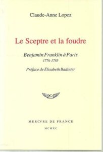 Née en Belgique, réfugiée aux États-Unis en 1940, Claude-Anne Lopez (1920-2012) est devenue l’une des plus grandes spécialistes mondiales de la vie privée de Franklin. Chercheuse à Yale, elle a travaillé pendant des décennies sur les Papers of Benjamin Franklin — le projet d’édition intégrale de ses écrits — et publié plusieurs ouvrages de référence, dont Mon Cher Papa: Franklin and the Ladies of Paris (1966). Le Sceptre et la foudre, paru au Mercure de France avec une préface d’Élisabeth Badinter, n’est pas une simple traduction de Mon Cher Papa : c’est une version repensée pour le public français, enrichie de nouvelles recherches.