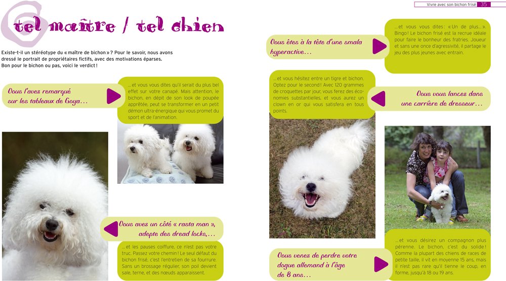 Un livre du vétérinaire Alain Fournier qui couvre tous les aspects pour prendre soin de votre chien. L’auteur partage son expertise sur la sélection, l’éducation, le tempérament, la nutrition, la physiologie et les soins de santé dont le Bichon frisé a besoin. Le livre présente aussi le standard officiel de la race. Un guide complet qui répondra aux principales questions que peuvent se poser les propriétaires inexpérimentés.