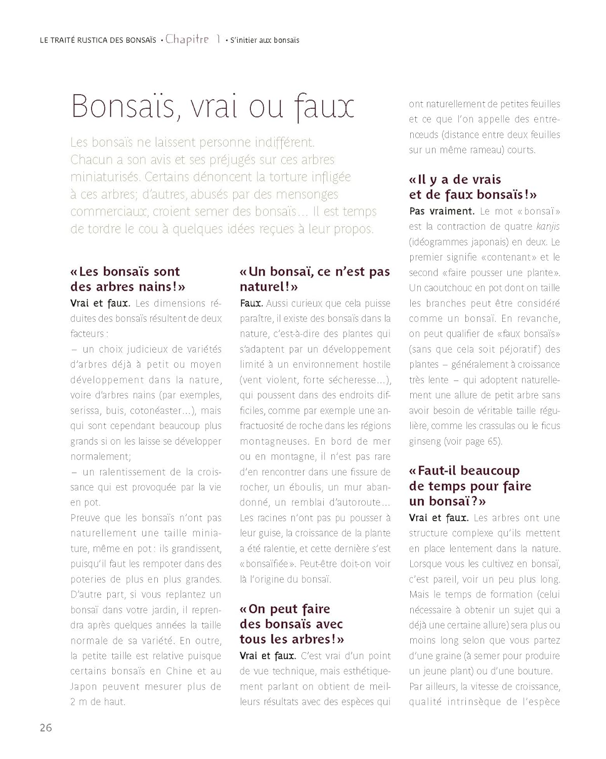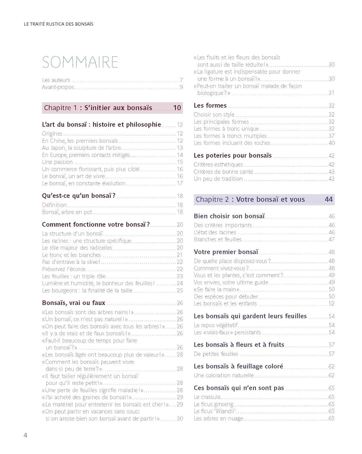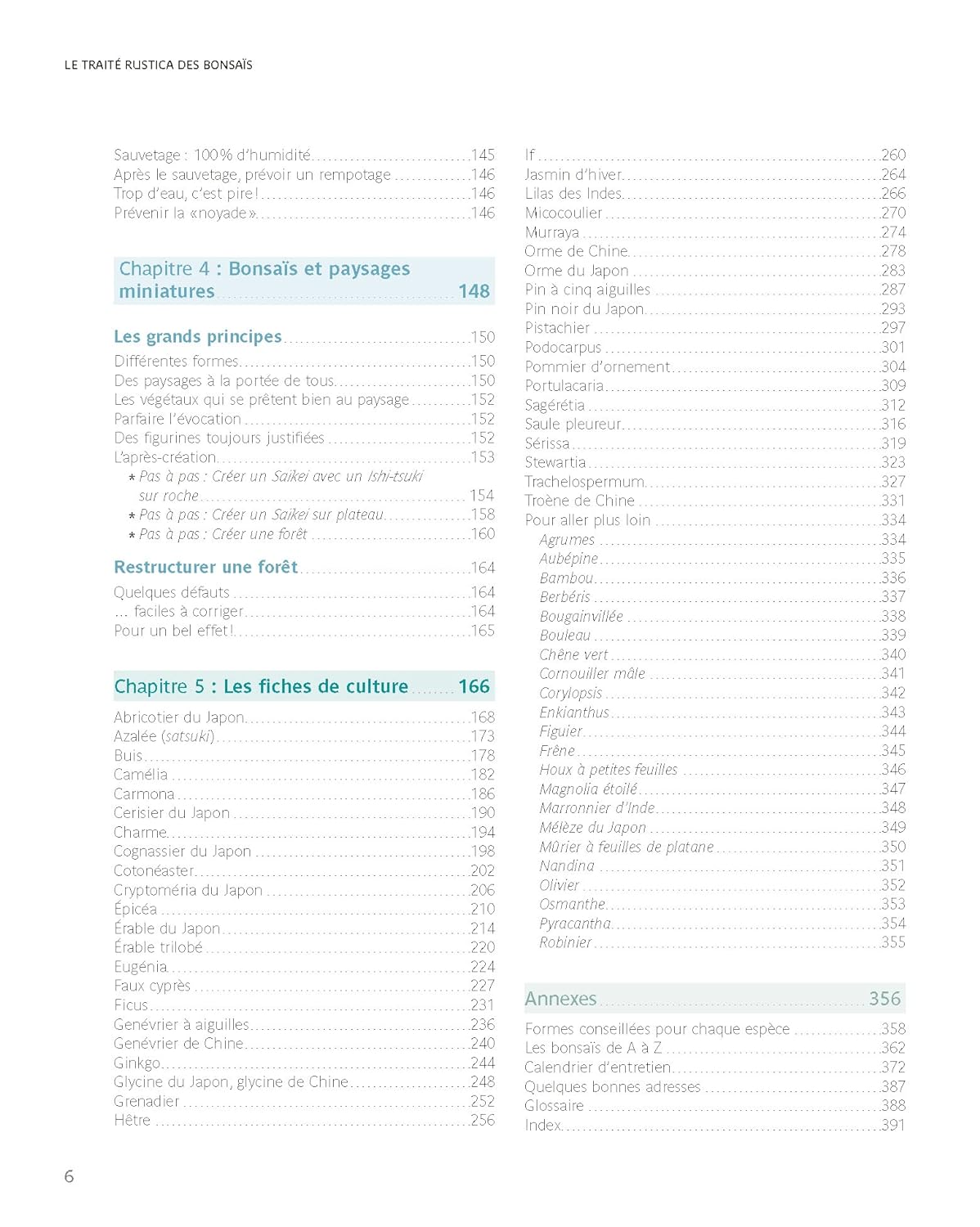 Le chapitre sur les soins explique tout ce qu’il faut savoir pour bien s’occuper de ses arbres (rempotage, fertilisation, installation, multiplication, maladies, etc.), et celui sur le calendrier indique comment veiller sur vos bonsaïs mois après mois.