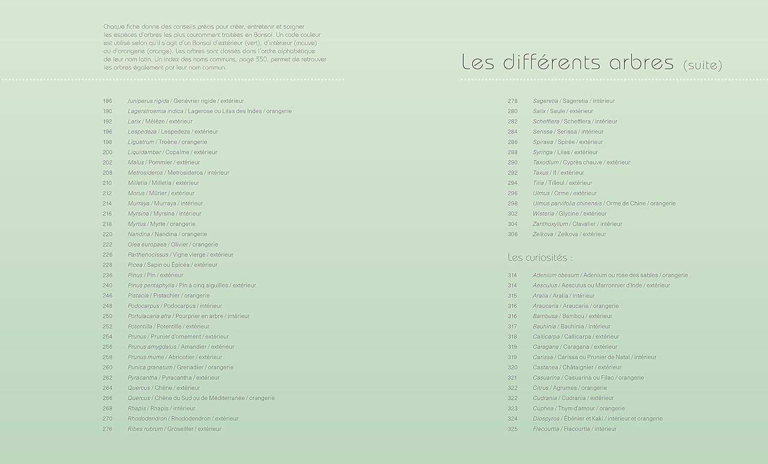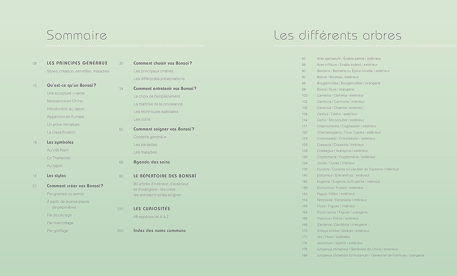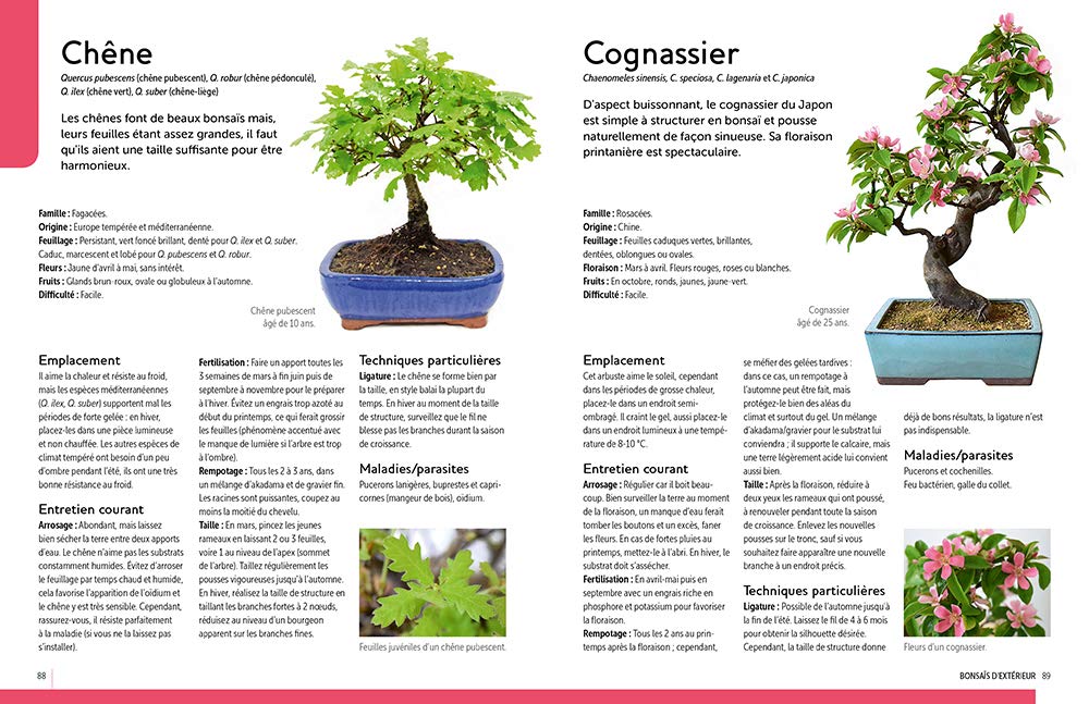 • Une cinquantaine de fiches de culture par espèces pour les principaux bonsaï d’intérieur et d’extérieur.