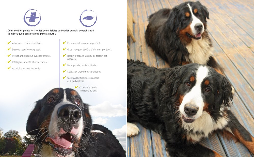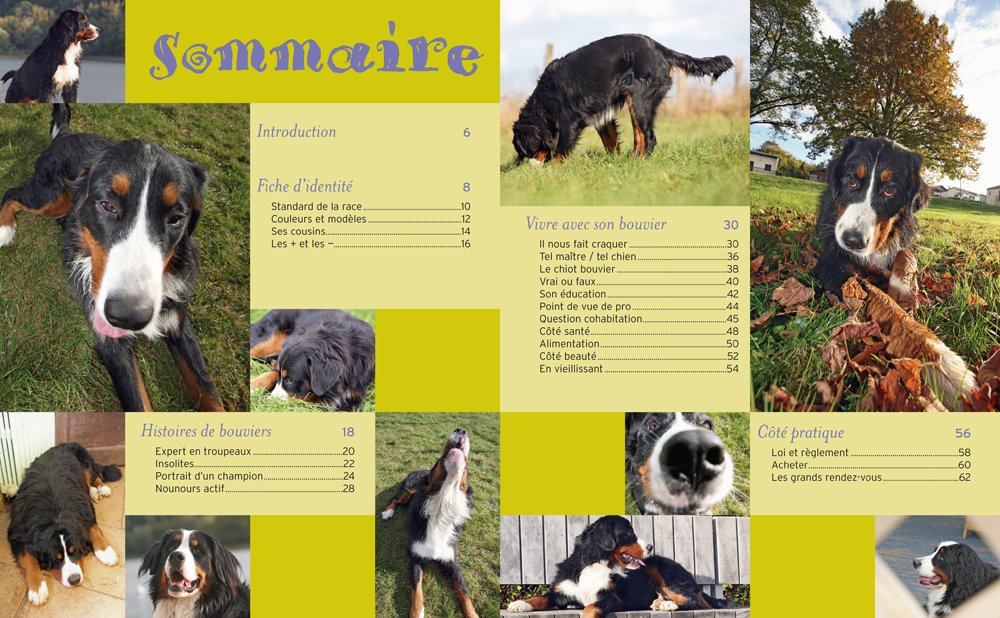 Toutes les facettes de la vie du Bouvier Bernois y sont abordées en profondeur, que ce soit en matière de sélection, d’adoption ou d’éducation, ou encore d’alimentation, d’entretien, de santé ou de comportement.
