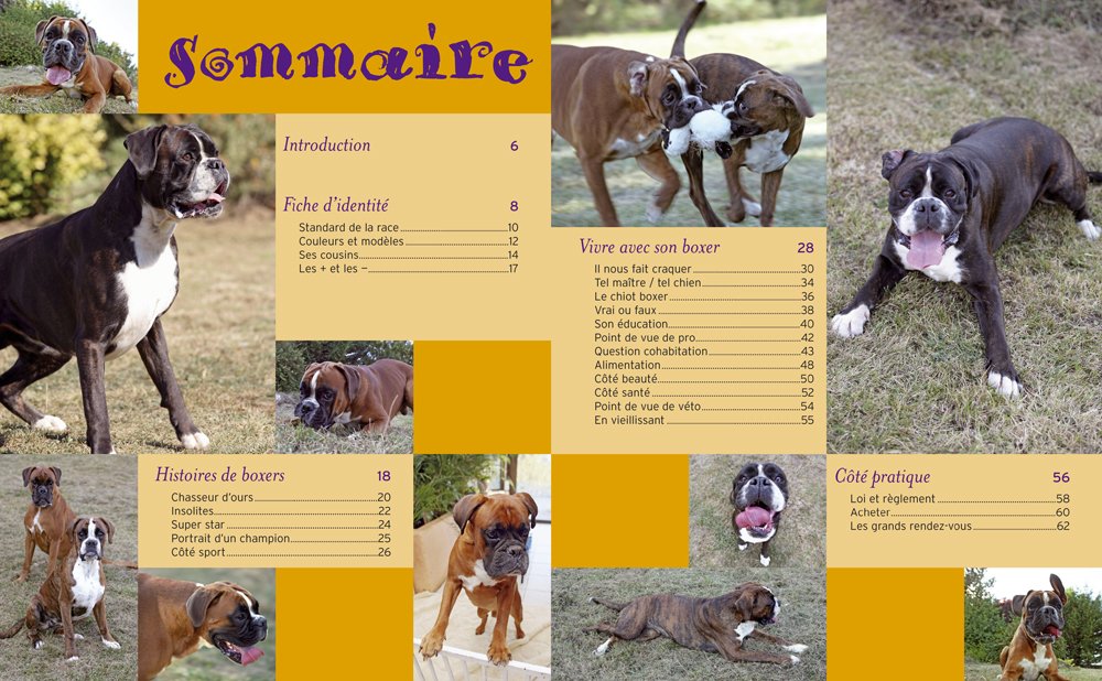 L’ouvrage couvre aussi toutes les informations essentielles concernant la santé, le comportement et les caractéristiques physiques du Boxer.