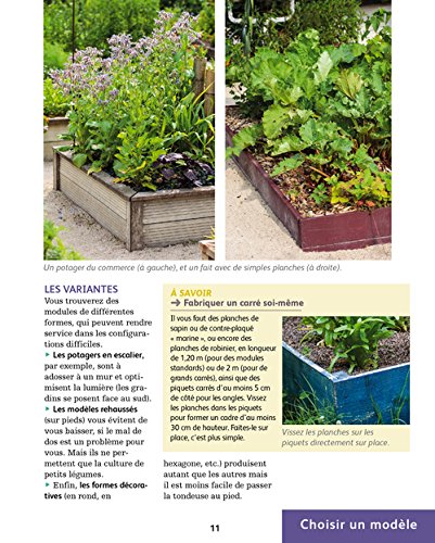 • Des carrés potagers thématiques : Le carré d’aromatiques ; Le carré de melons ; Le carré de tomates ; Le carré de concombre ; Le carré porte-graines ; Le carré de poche ; Un carré pour débutants ; Les demi-carrés adossés.