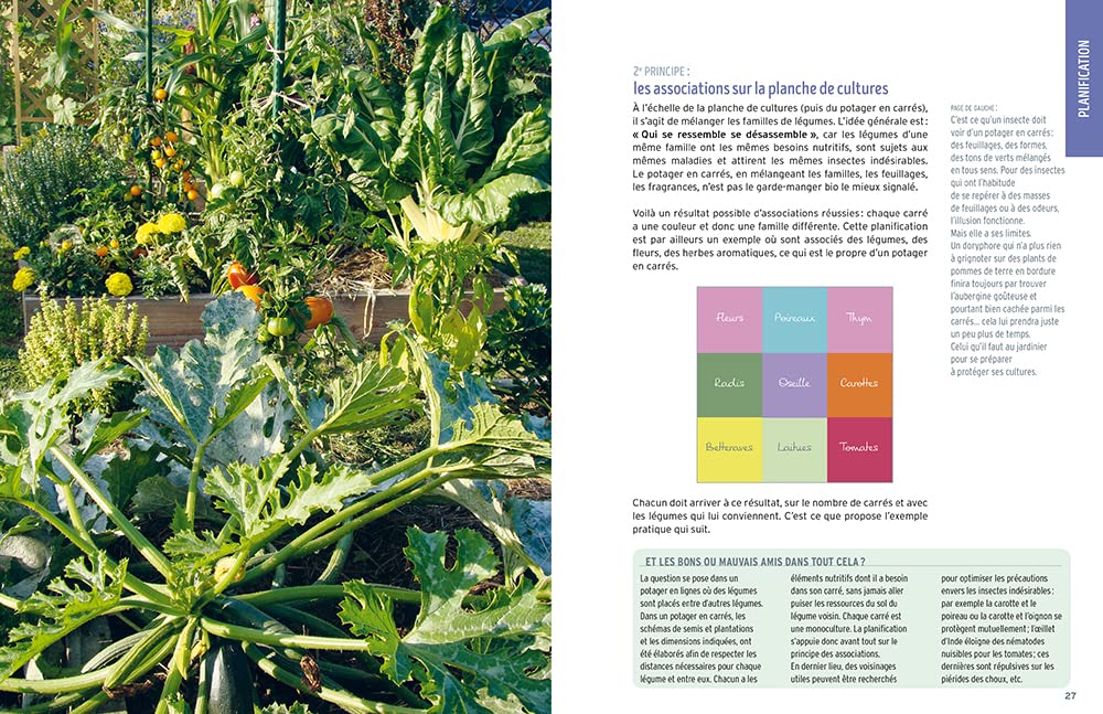 « Le guide pratique du potager en carrés » est un condensé de la méthode qui met plus particulièrement l’accent sur la planification optimale des carrés, principale difficulté pour les débutants. Avec les fiches de culture de 30 légumes et 10 herbes aromatiques, ultra complètes et illustrées.