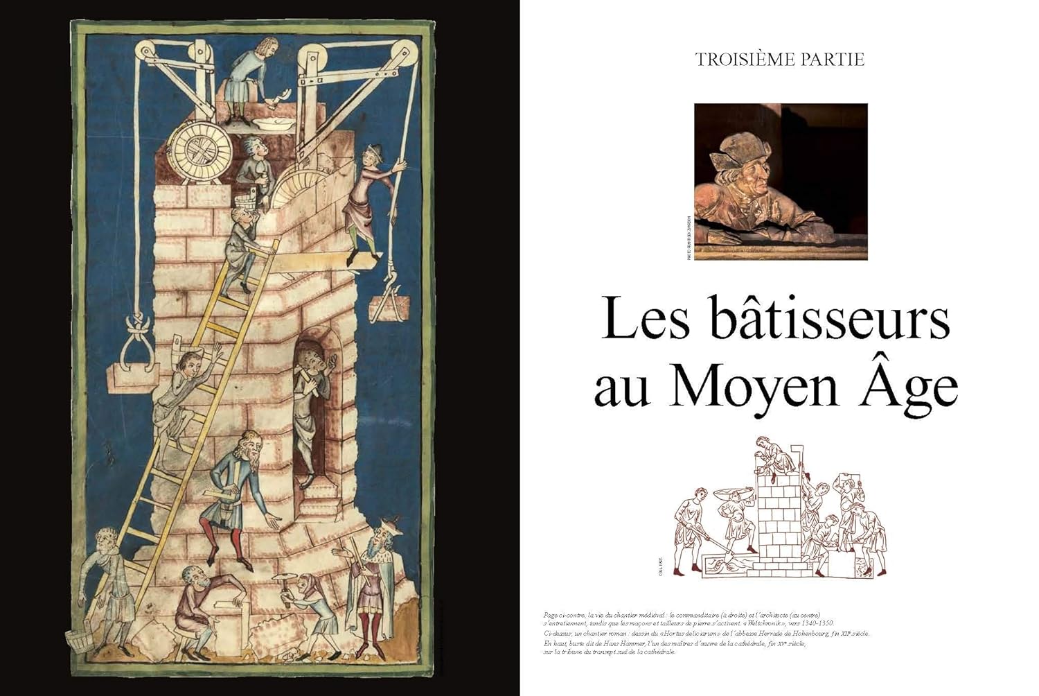 Avec une iconographie exceptionnelle. Les étapes du chantier modélisées en 3D, des photographies anciennes inédites, un saisissant reportage photographique sur les bâtisseurs d’aujourd’hui, des miniatures et dessins du Moyen Âge illustrant le chantier et les métiers.