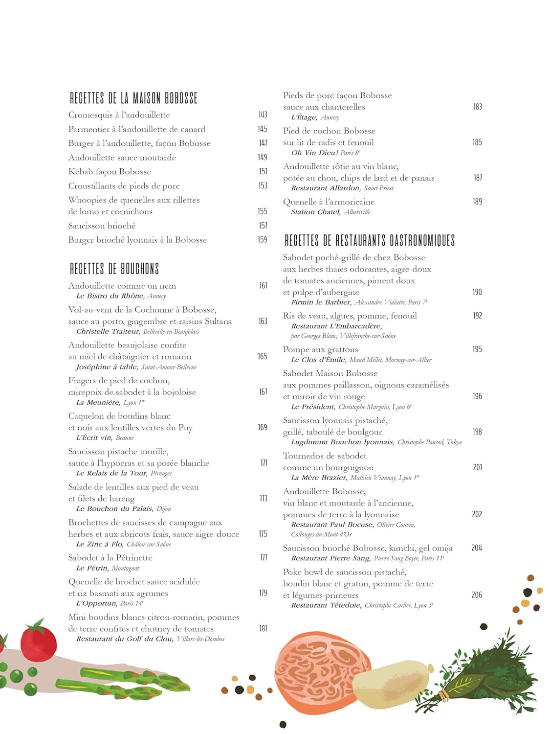 Fournisseur des bouchons (restaurants typiques lyonnais) comme des tables étoilées, Bobosse joue la carte du local et du durable. Une trentaine de recettes viennent illustrer la place de choix qu’occupe la charcuterie dans la gastronomie actuelle.