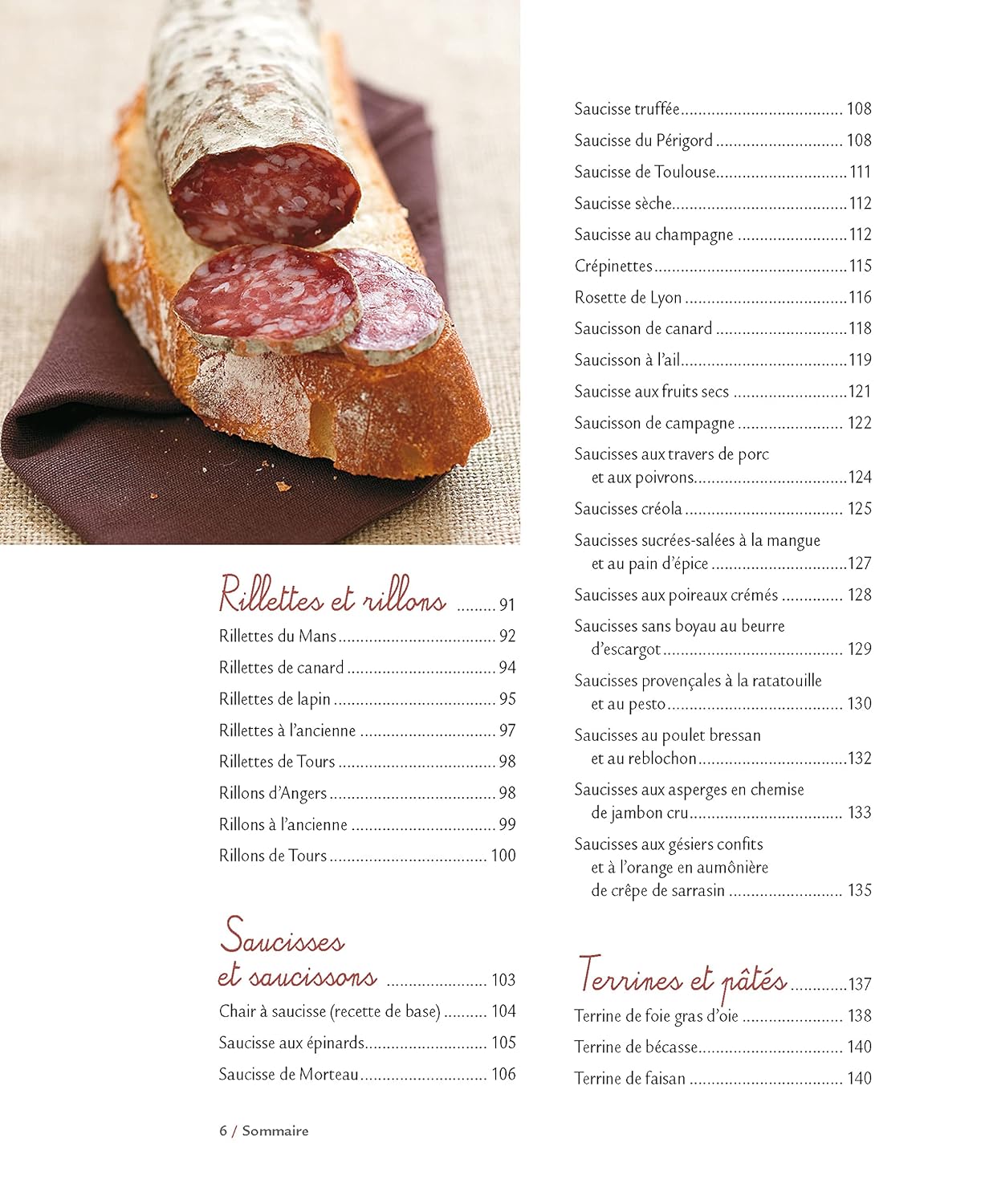 L’ouvrage présente une gamme impressionnante de préparations. Des pâtés en croûte aux rillettes, en passant par les boudins et les foies gras, chaque recette est illustrée par des photographies d’une grande précision. On apprécie particulièrement les chapitres consacrés aux spécialités régionales, véritables trésors du patrimoine culinaire français.