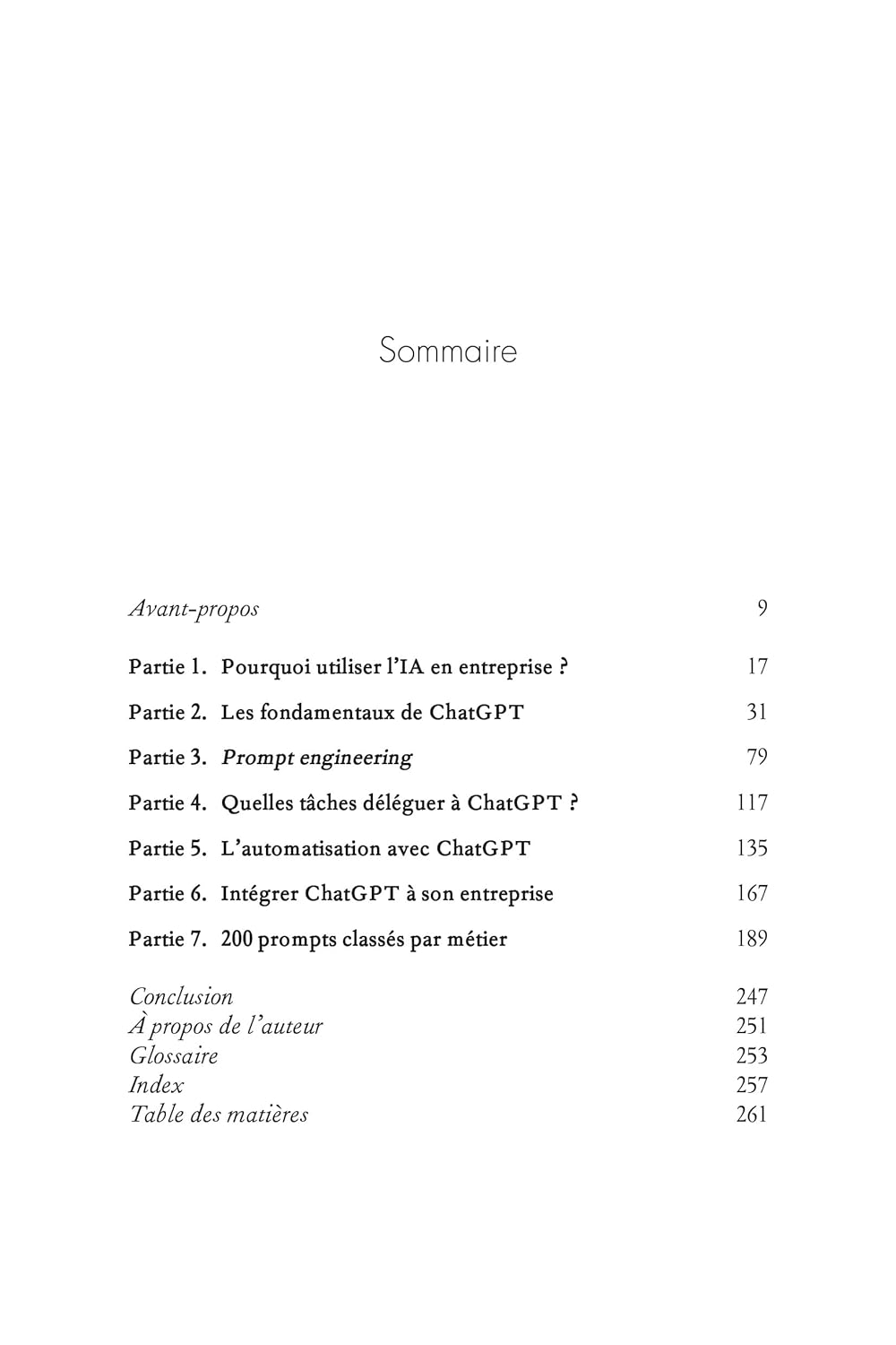 Grâce à ses conseils, vous apprendrez à déléguer judicieusement certaines tâches à ChatGPT. Rédaction, traitement de données, analyses stratégiques, planification… Les 200 prompts proposés vous permettront de gagner un temps précieux au quotidien.