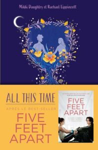C’est dans les couloirs de ce même hôpital que Kyle croise Marley, une jeune fille elle aussi en deuil, qui porte une culpabilité dont elle refuse de parler. Ils commencent à passer du temps ensemble — d’abord par besoin de compagnie, puis parce que quelque chose de plus fort s’installe. Leur rapprochement est lent, sincère, et se heurte en permanence au poids de ce qu’ils ont perdu. Mais le roman réserve un retournement de situation majeur dans son dernier tiers, qui change rétroactivement le sens de tout ce qu’on a lu — et donne au titre (All This Time, « depuis le début ») sa véritable portée. Difficile d’en dire plus sans gâcher la surprise. Déjà co-autrices de Five Feet Apart, Rachael Lippincott et Mikki Daughtry ont voulu écrire ce qu’elles appellent un « conte de fées moderne » — et qu’à la dernière page, on comprend pourquoi.