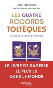 Écrit par Don Miguel Ruiz, médecin mexicain devenu enseignant spirituel après une expérience de mort imminente, ce livre puise dans la sagesse attribuée aux anciens Toltèques pour formuler quatre principes de vie : que votre parole soit impeccable, ne prenez rien personnellement, ne faites aucune supposition, faites toujours de votre mieux.