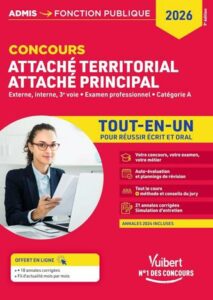 Référence durable des préparations territoriales, ce tout-en-un Vuibert couvre l’ensemble des épreuves écrites et orales des concours d’attaché et de l’examen professionnel d’attaché principal. La 9e édition (2025) apporte une actualisation post-sessions 2024, intègre des annales corrigées récentes, et propose une simulation d’entretien assortie d’une liste de questions possibles (posture, motivation, déontologie, cas pratiques de management public).