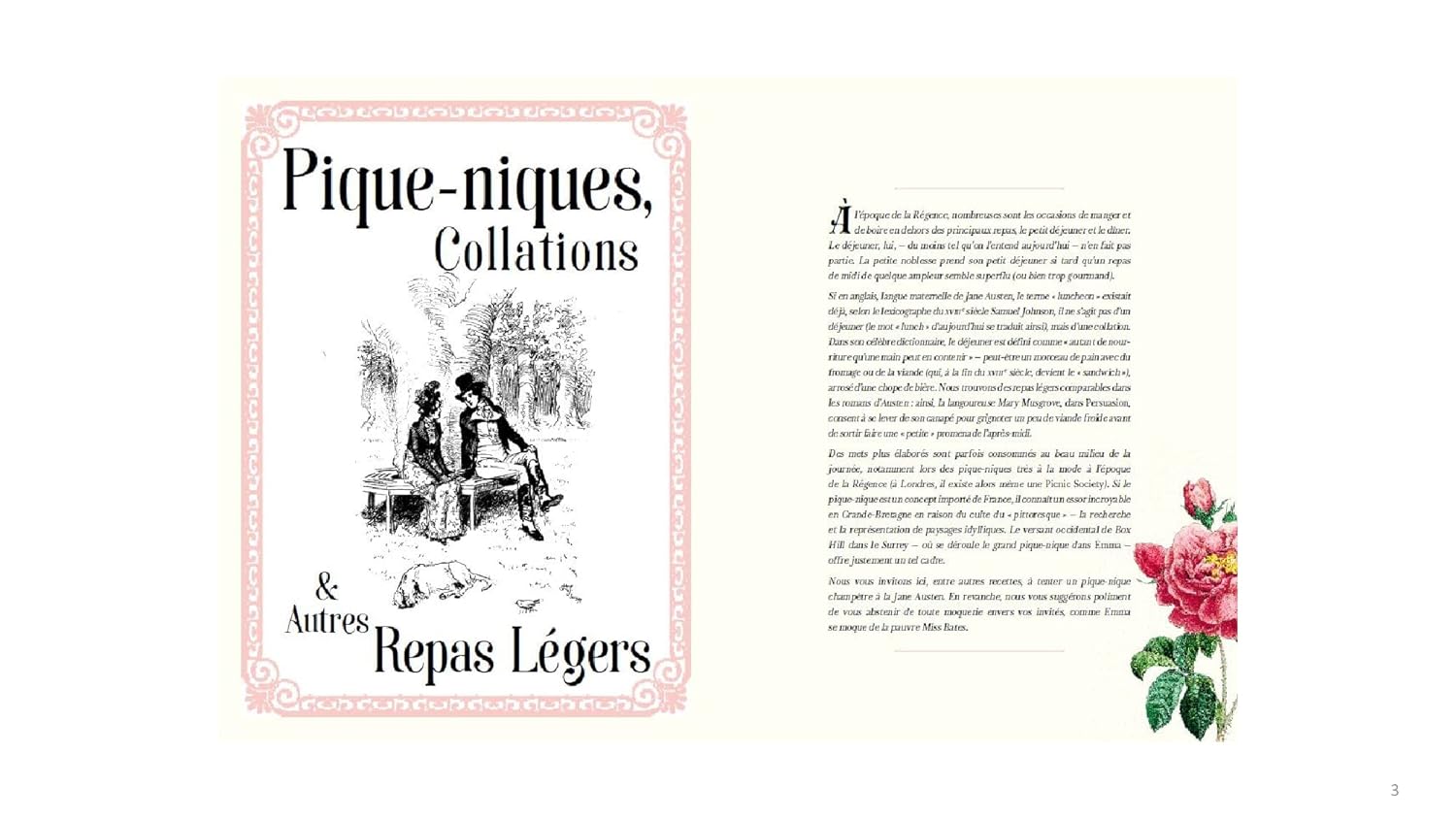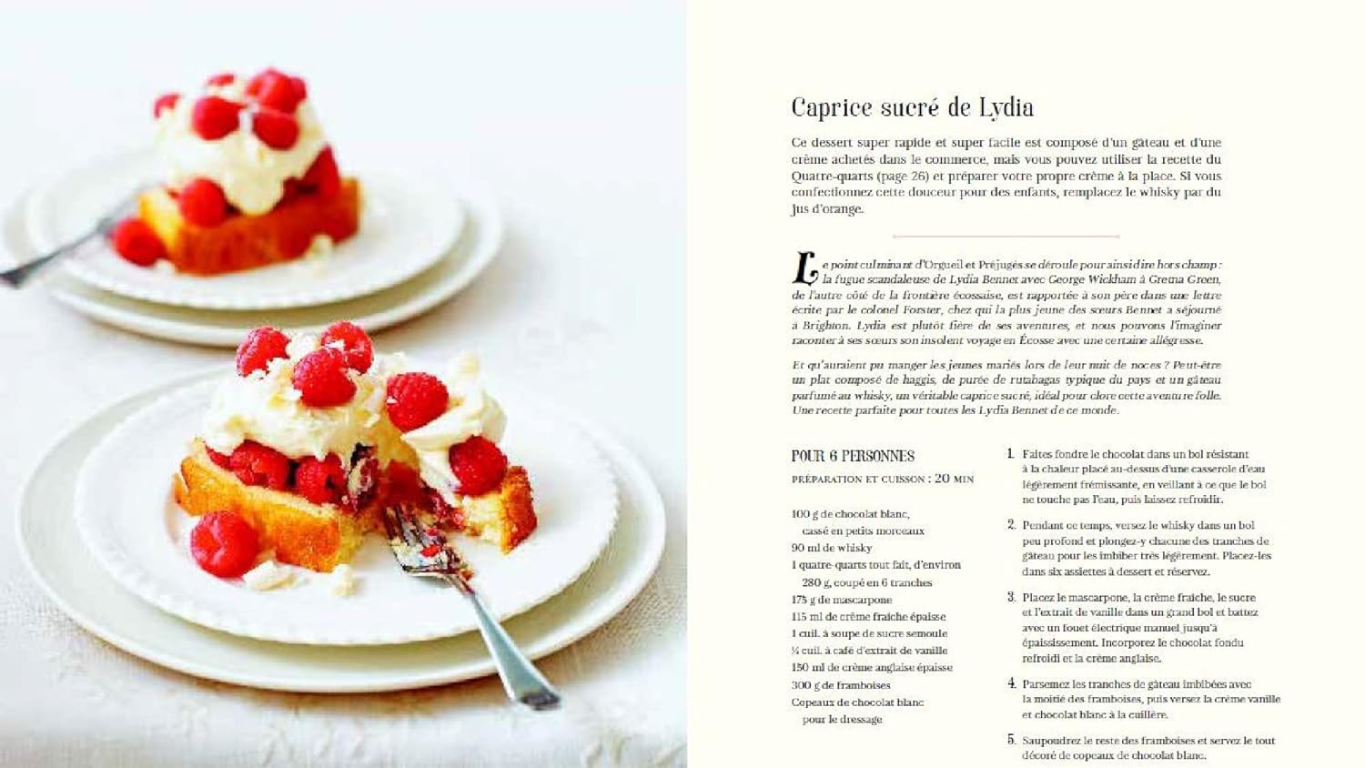 Savourez l’univers de Jane Austen à travers ses mets emblématiques ! Ce livre propose plus de 70 recettes inspirées des romans de la célèbre auteure anglaise. Du souper au Netherfield Ball (réception fastueuse dans « Orgueil et Préjugés ») à la cueillette de fraises à Donwell Abbey (moment clé dans « Emma »), chaque met raconte une histoire.