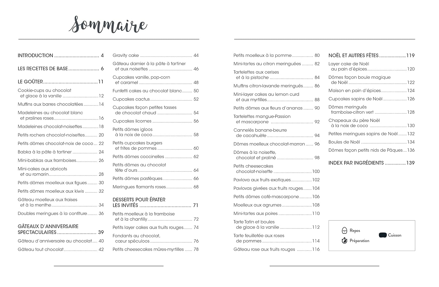 Pour épater la galerie, le chapitre « Gâteaux et desserts pour recevoir » regorge d’idées. Génoise aux abricots, layer cake café-noix, mini-tartelettes double chocolat… Des créations dignes des plus grands pâtissiers.