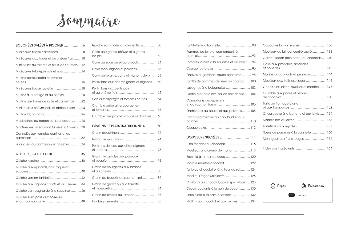 Enfin, « Tartes, cakes et plats salés » nous rappelle la polyvalence du Cake Factory. Quiche lorraine, lasagnes au bœuf, gratin dauphinois… Des recettes salées qui rivalisent avec les sucrées.
