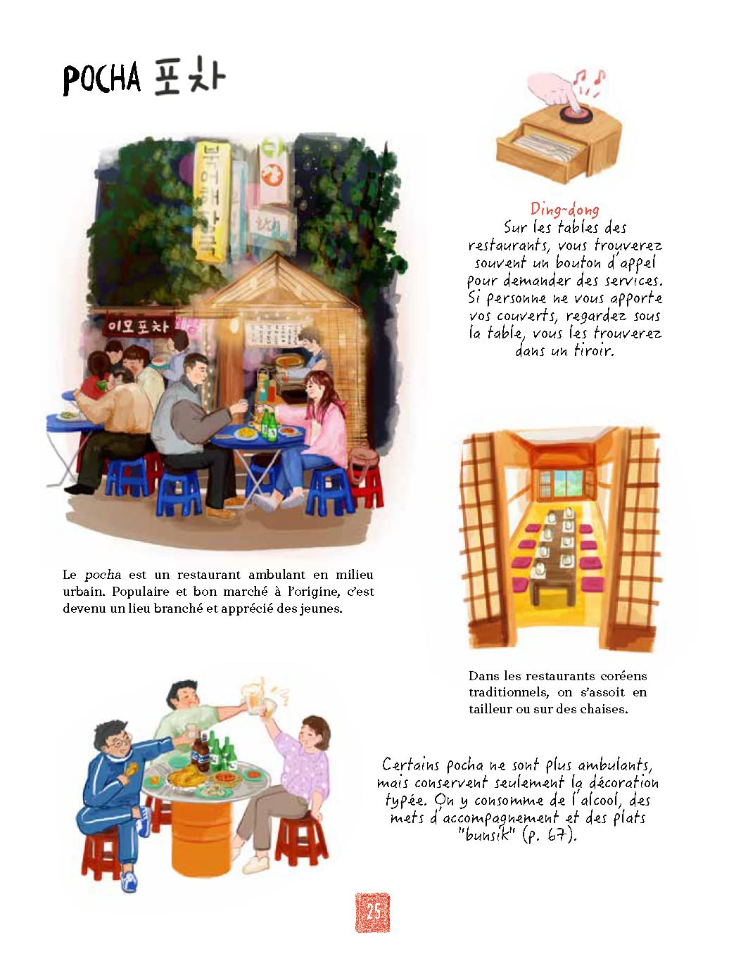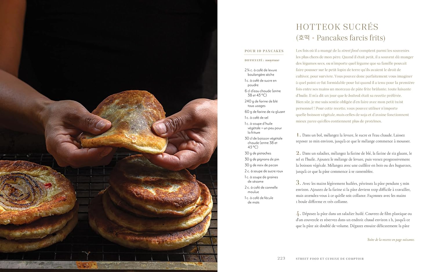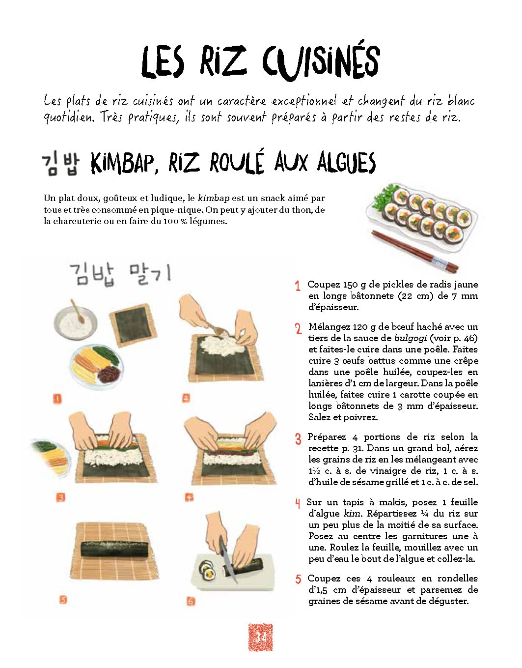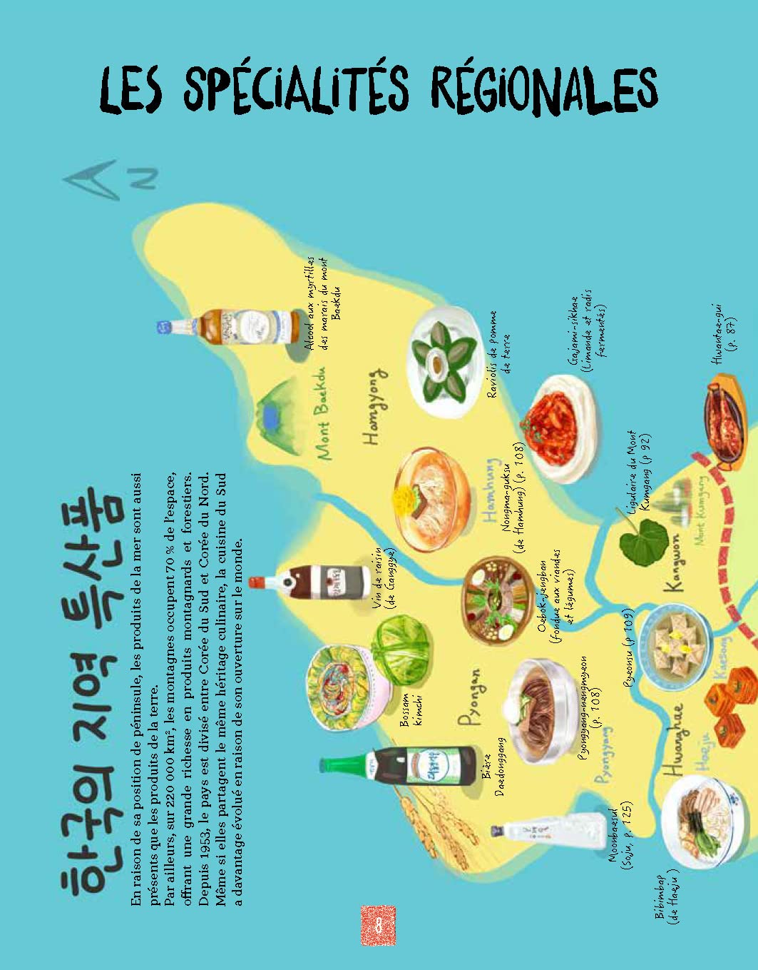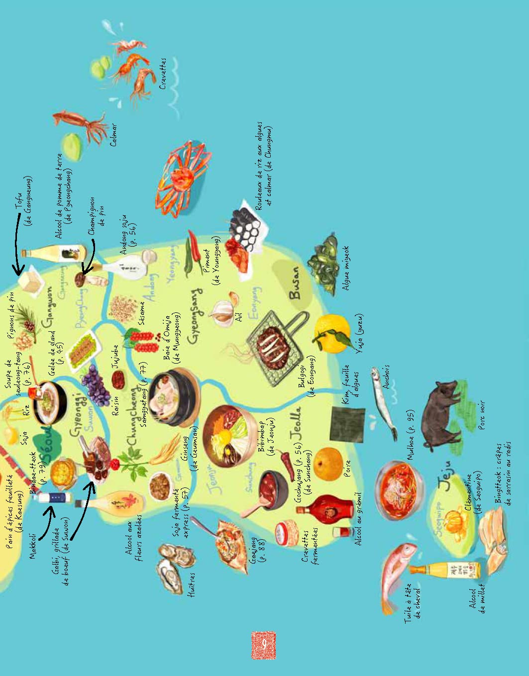 On y découvre bien sûr les classiques (kimchi, bulgogi, bibimbap), mais aussi des plats moins connus. Les recettes sont réparties en sept catégories alléchantes : cuisine de fête, soupes et ragoûts, accompagnements, apéritifs, street food, fusion et desserts.
