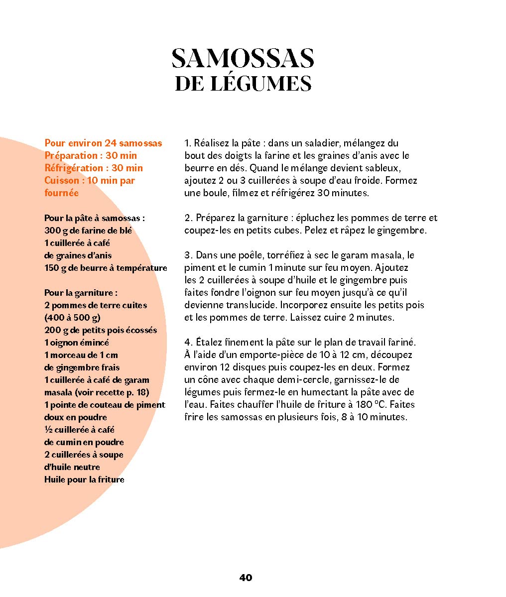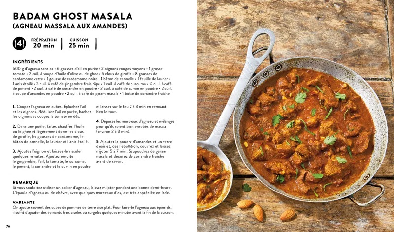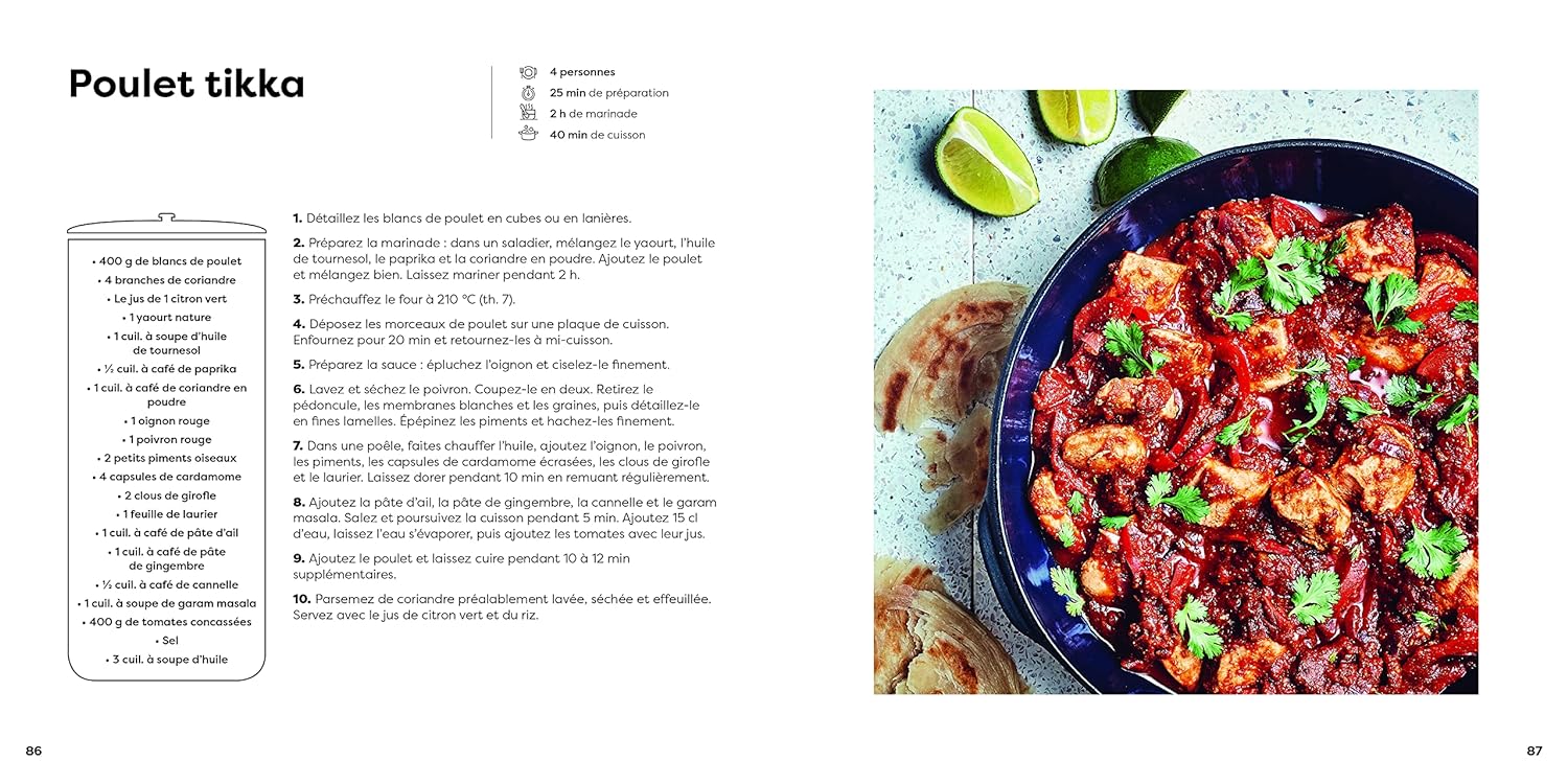 Au menu ? Des recettes délicieuses et faciles à réaliser au quotidien. Samossas, poulet tikka masala, naans… Il y en a pour tous les goûts ! Chaque recette est illustrée par des photos en pas à pas, vous guidant ainsi dans chaque étape de préparation.