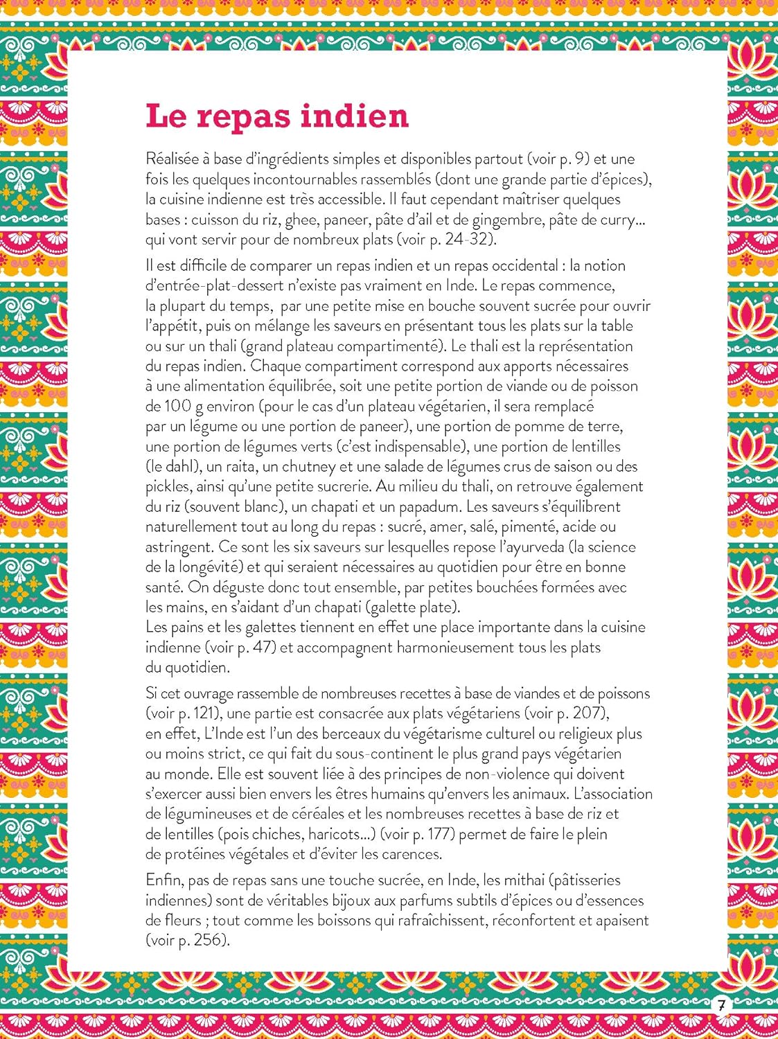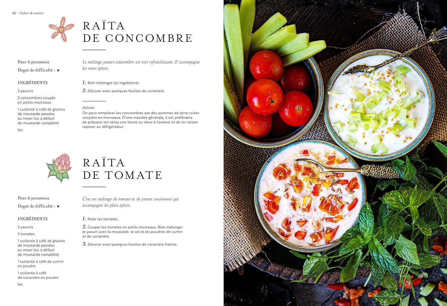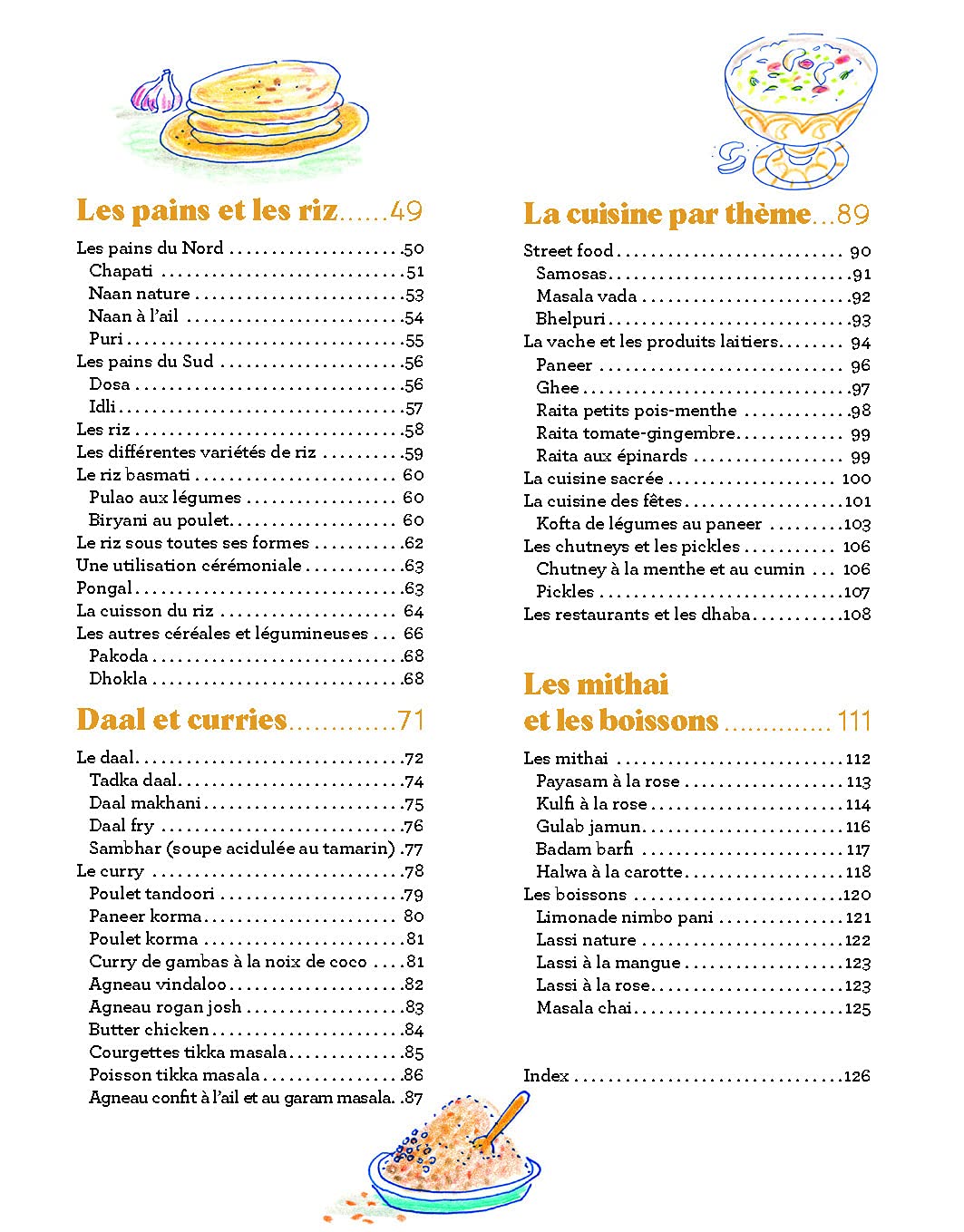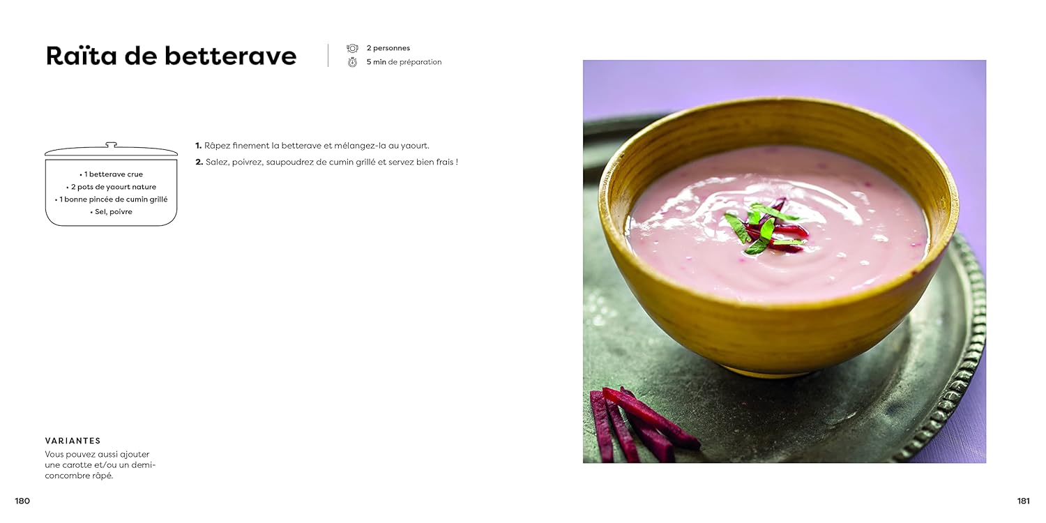 L’ouvrage propose ensuite un éventail de recettes végétariennes traditionnelles. Des raïta aux chapatis, en passant par les chutney, pulao et autres dal. Les boissons ne sont pas en reste, avec notamment des recettes de tchaï ou de lassi. Bref, tout le nécessaire pour une cuisine à la fois savoureuse et bénéfique pour la santé !