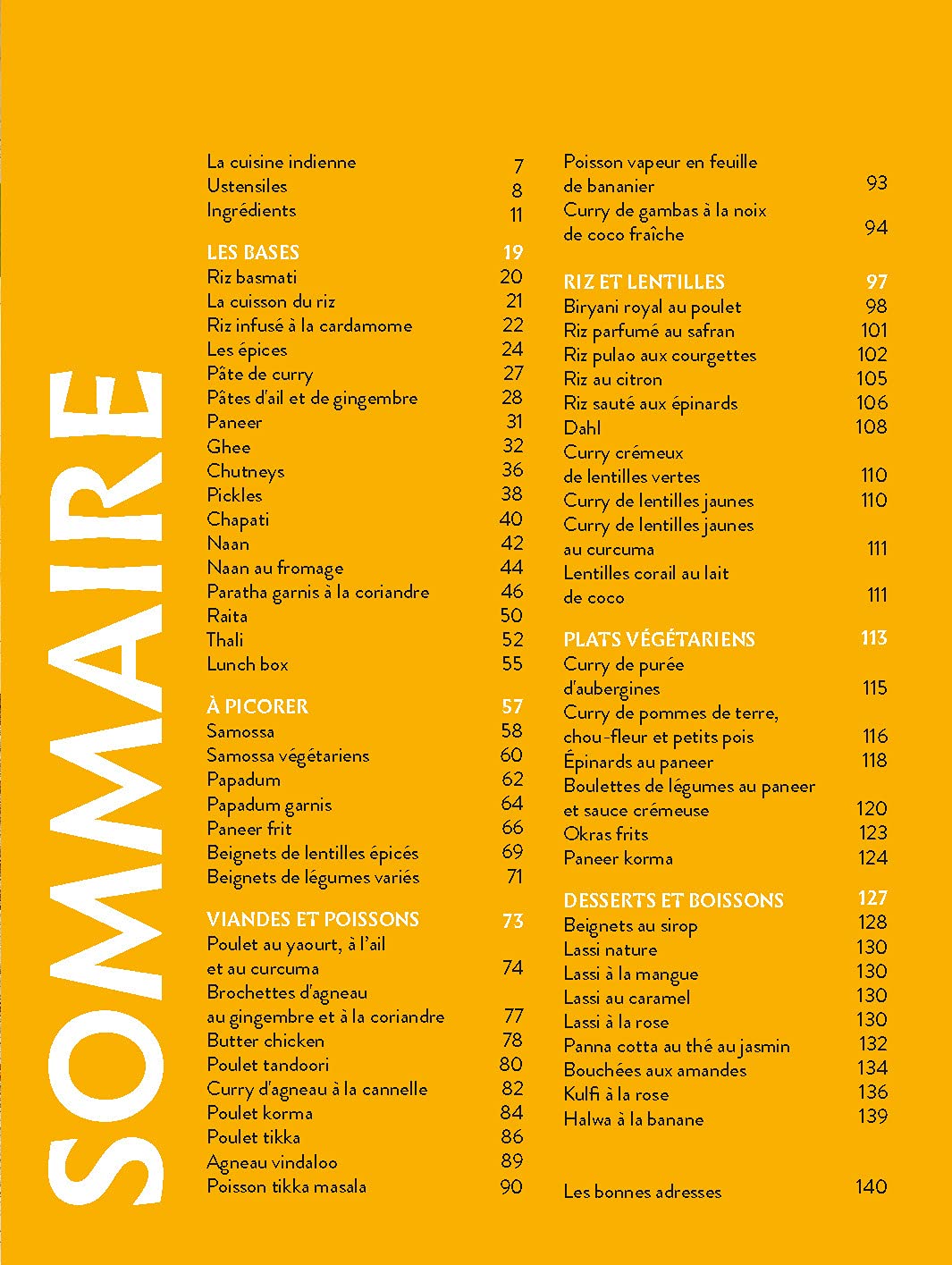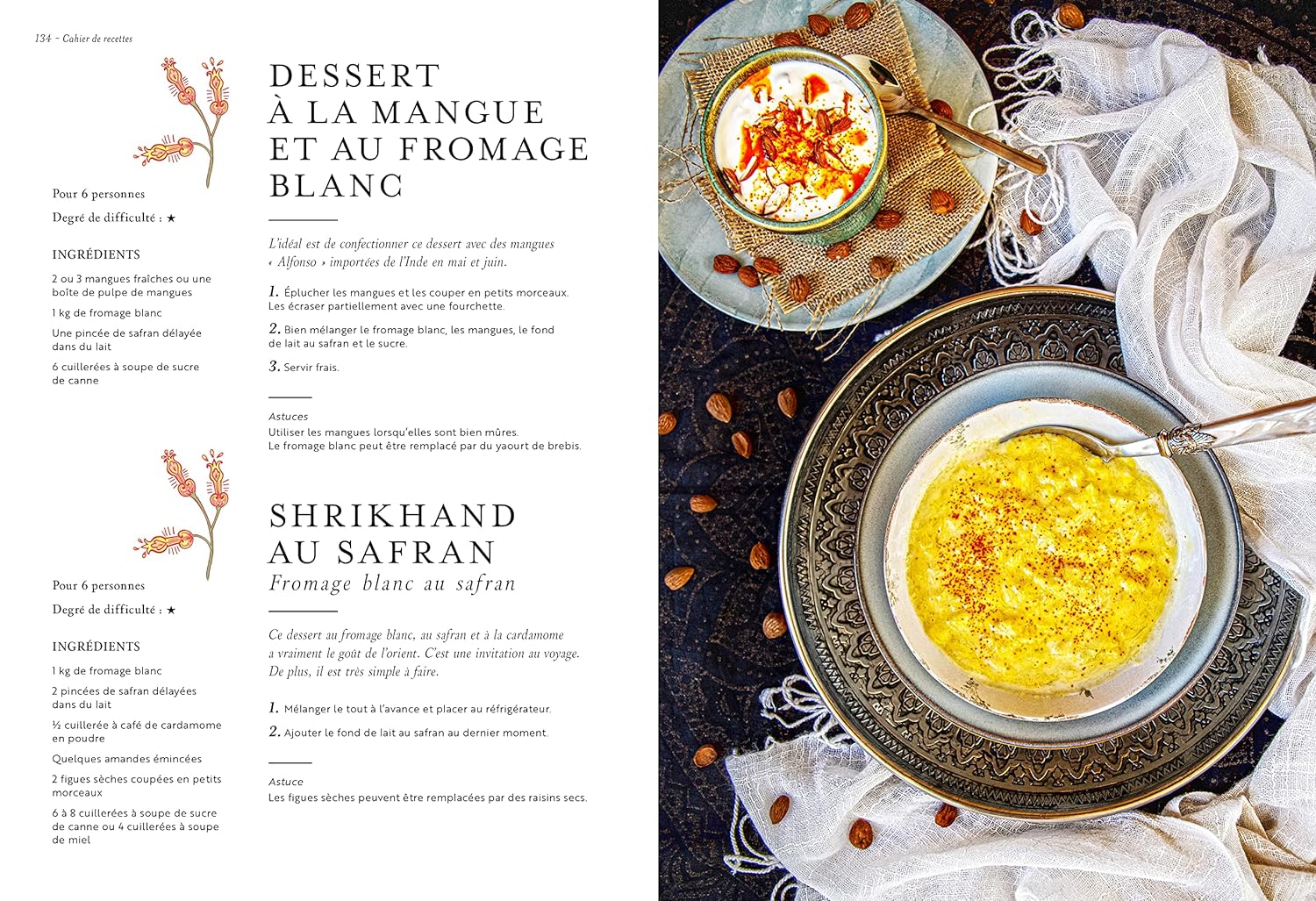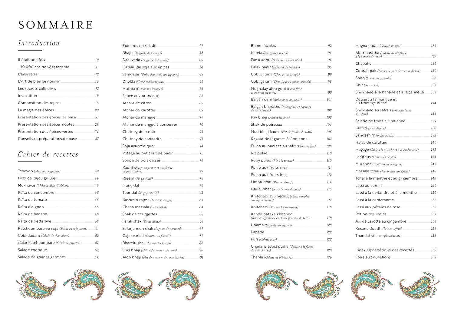 L’ouvrage propose ensuite un éventail de recettes végétariennes traditionnelles. Des raïta aux chapatis, en passant par les chutney, pulao et autres dal. Les boissons ne sont pas en reste, avec notamment des recettes de tchaï ou de lassi. Bref, tout le nécessaire pour une cuisine à la fois savoureuse et bénéfique pour la santé !