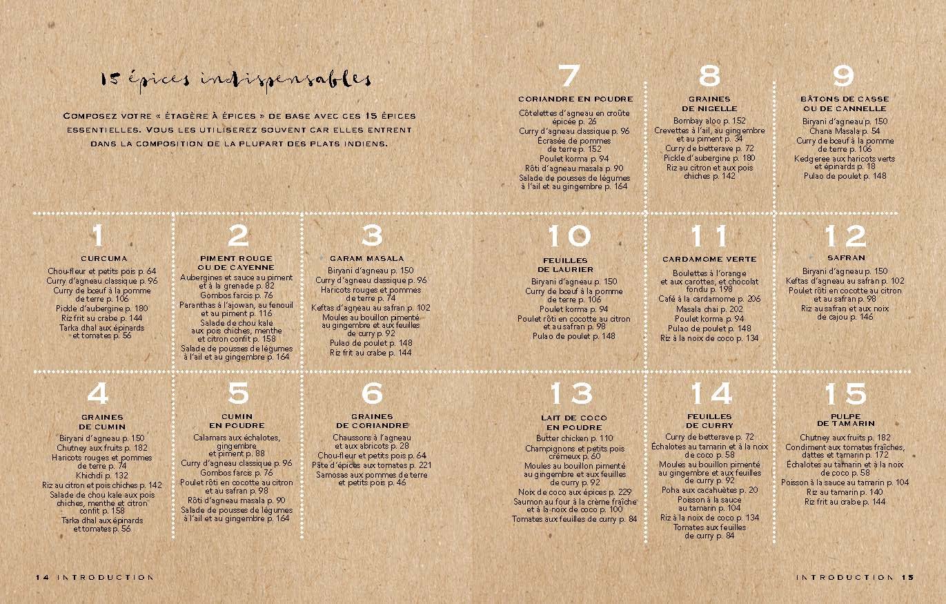 Un chapitre dédié aux « basiques essentiels » permet de maîtriser les fondamentaux. Quels ustensiles choisir ? Comment utiliser le tandoor (four traditionnel) ? Grâce à ce guide complet, réaliser son premier dîner indien devient un jeu d’enfant !