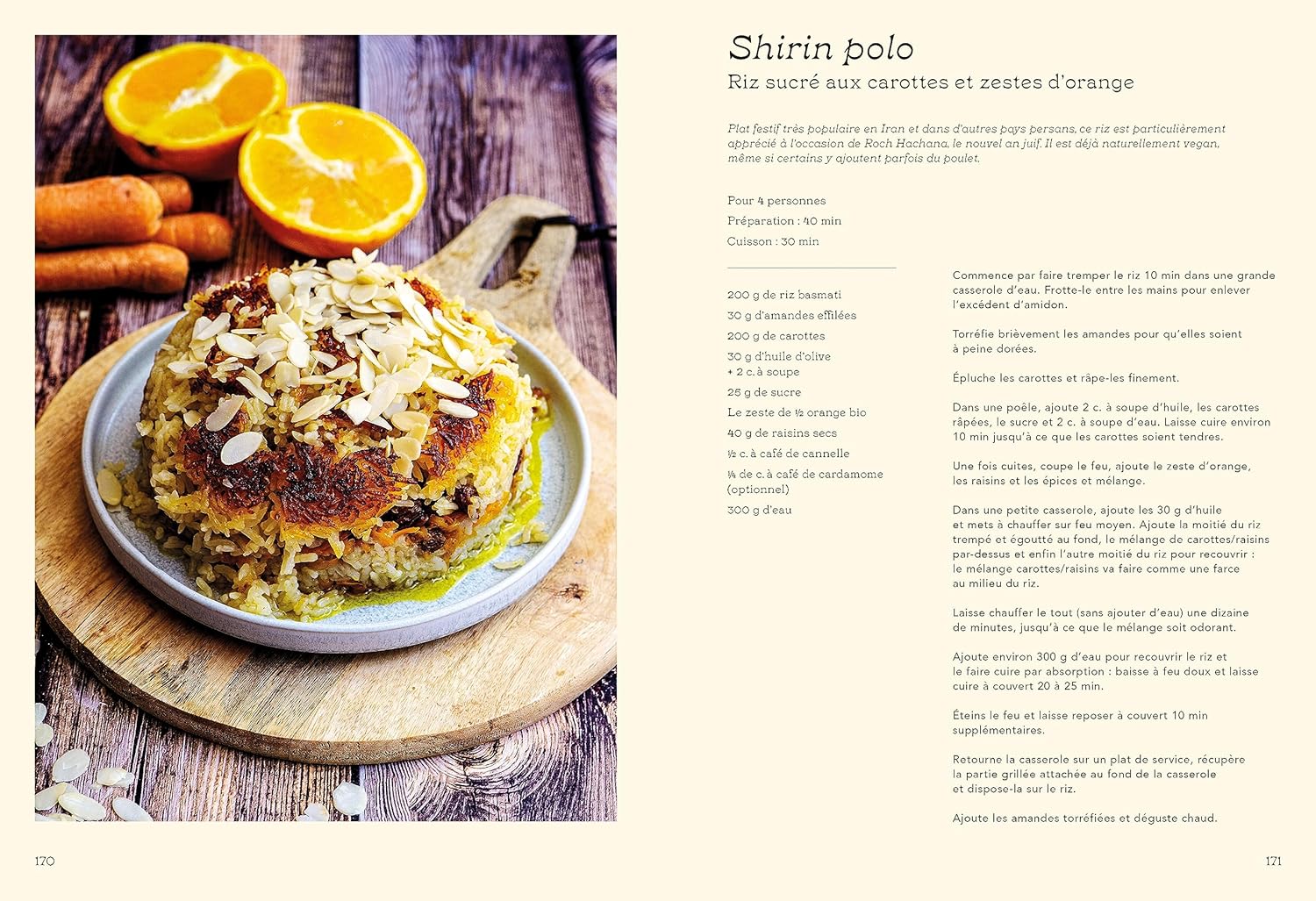 L’auteur nous fait aussi découvrir des accompagnements originaux : chou-fleur frit, challah (pain traditionnel) au citron confit ou encore za’atar (mélange d’épices). Un livre qui donne envie de recevoir et partager !