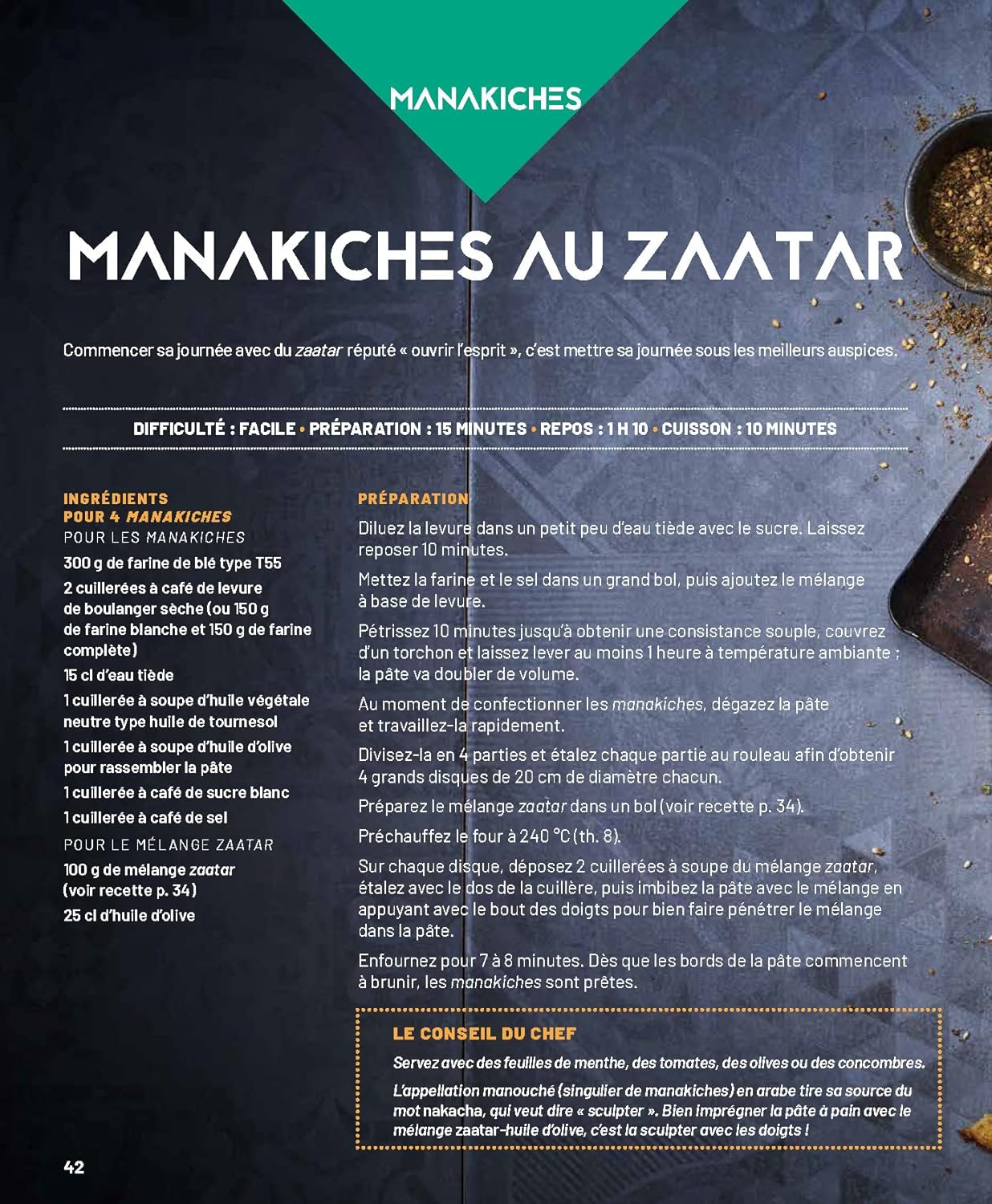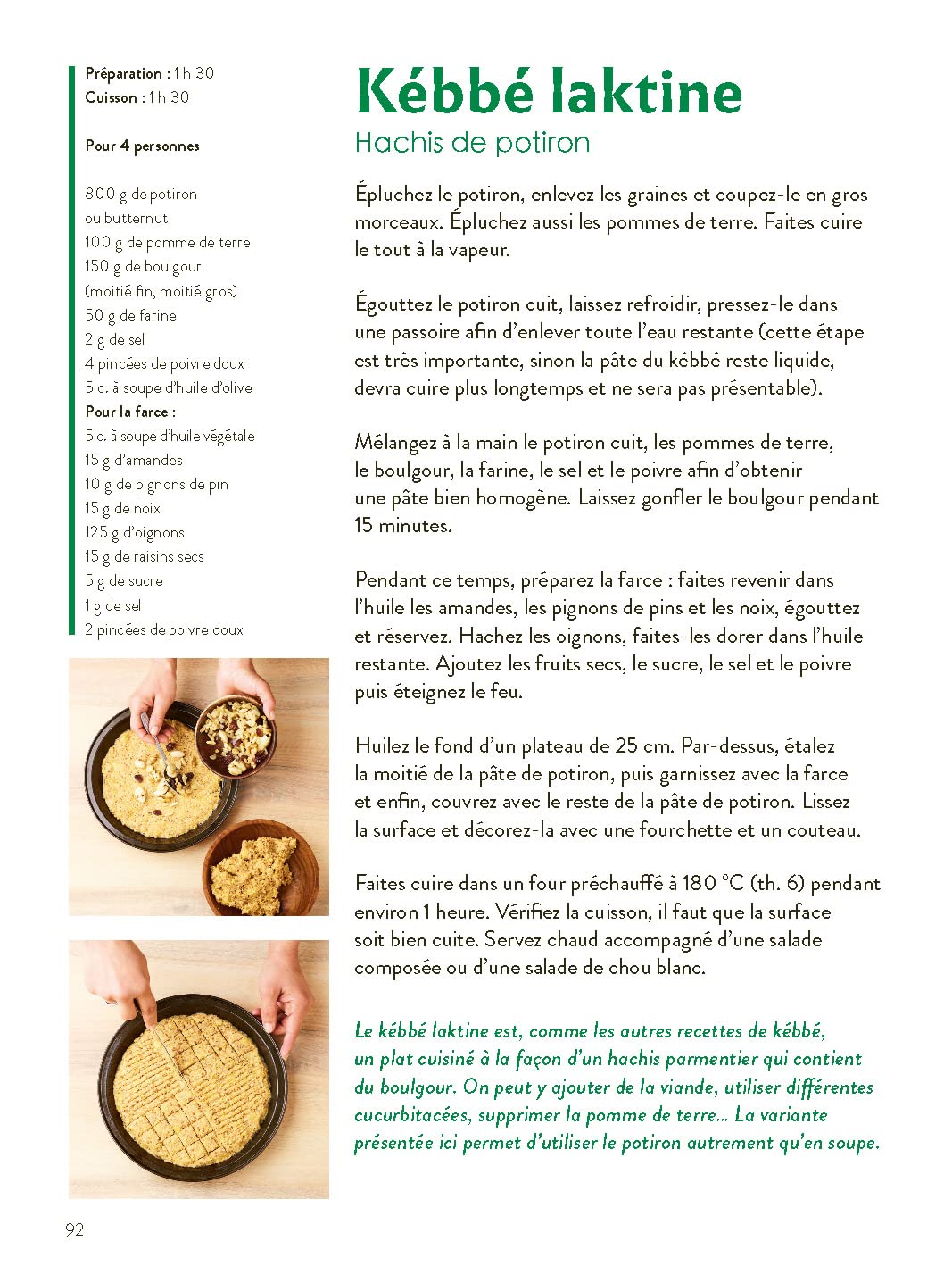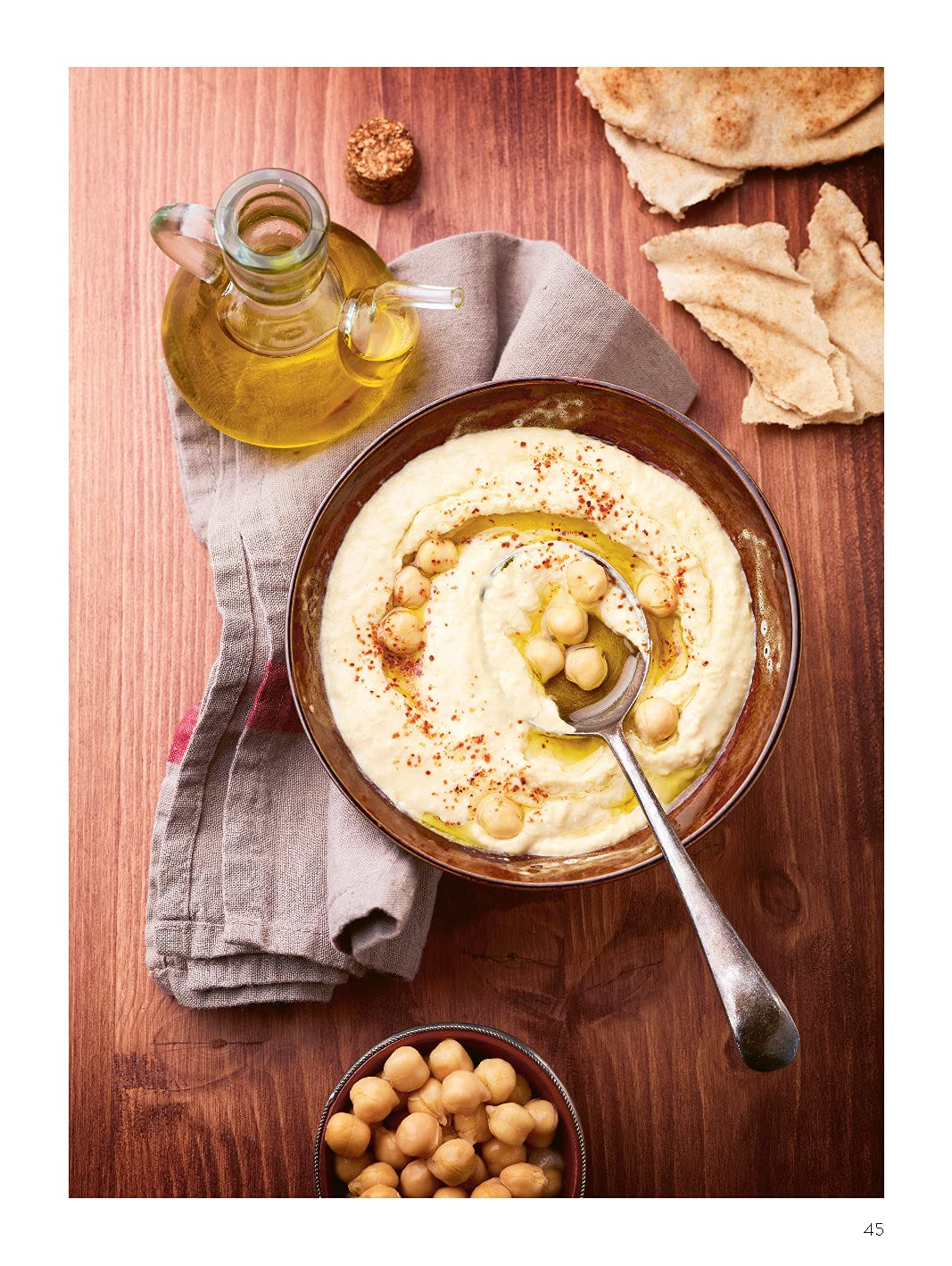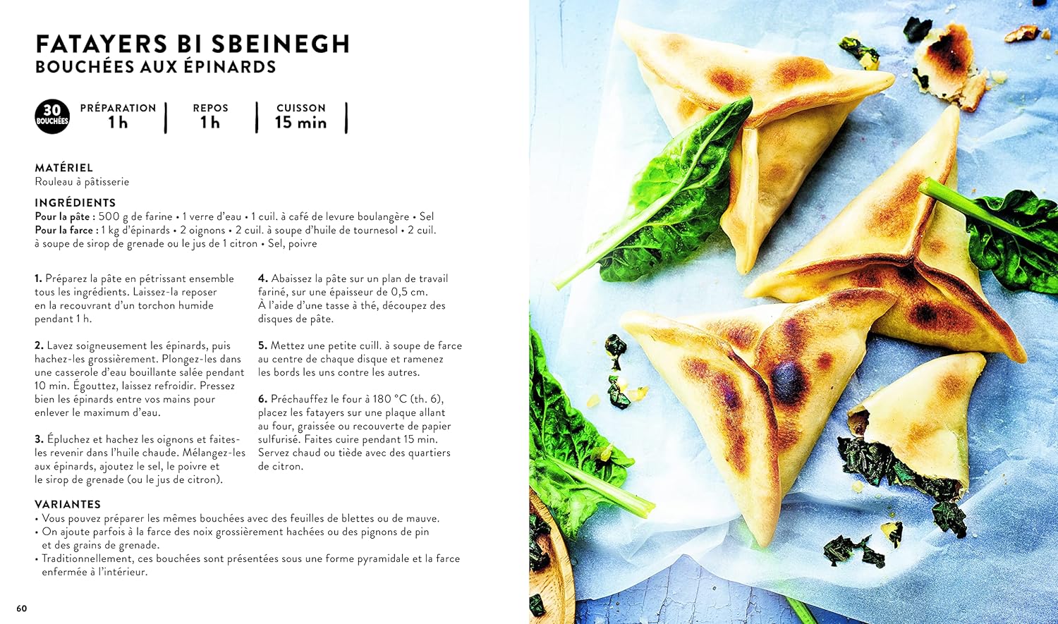 On y trouve les préparations de base (pâte à pain, riz aux vermicelles), les incontournables mezzés (taboulé, houmous), des salades originales (fattouch, salade de fèves), des options végétariennes alléchantes (falafels, hachis de potiron), des plats de viandes et poissons savoureux, et des desserts parfumés.