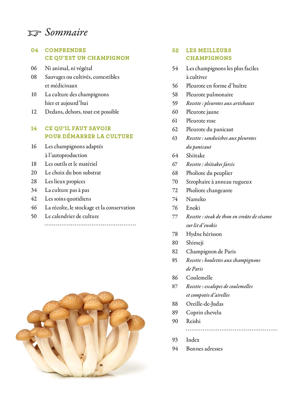 Les 17 champignons proposés vont des plus classiques aux plus originaux, tous très en vogue dans la cuisine contemporaine (Shiitake, Nameko, Enoki, etc.). L’ouvrage est ainsi parfait pour les débutants, à la ville comme à la campagne, pour la culture ou en cuisine.