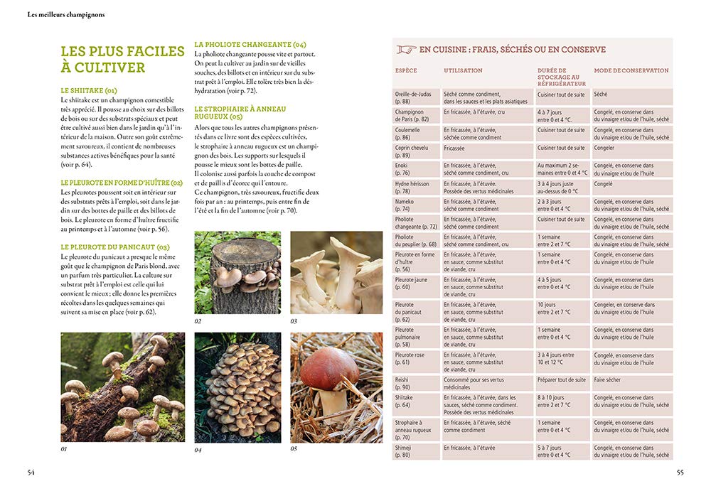 Cet ouvrage de Folko Kullmann est une synthèse extrêmement bien faite pour réussir chez soi, la culture des champignons, que ce soit à petite échelle (maison, terrasse, balcon), ou à plus grande échelle (cave, jardin). Après avoir passé en revue toutes les informations de base pour se lancer (matériel nécessaire, substrat, conseils de base de culture, modes de conservations, etc.), l’auteur présente 17 champignons faciles à cultiver avec, pour chacun, le mode de culture à petite ou à grande échelle, le calendrier de plantation et de récolte ainsi que ses qualités nutritives et thérapeutiques. Quelques recettes originales accompagnent les espèces principales.