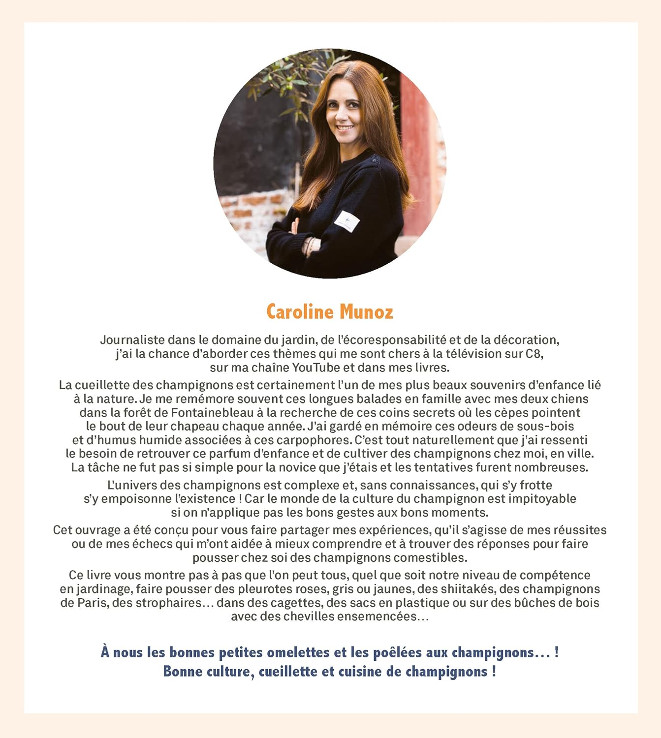 Journaliste dans le domaine du jardin, de l’écoresponsabilité et de la décoration, Caroline Munoz vous propose de découvrir dans cet ouvrage la culture de plusieurs champignons grâce à des pas à pas détaillés !