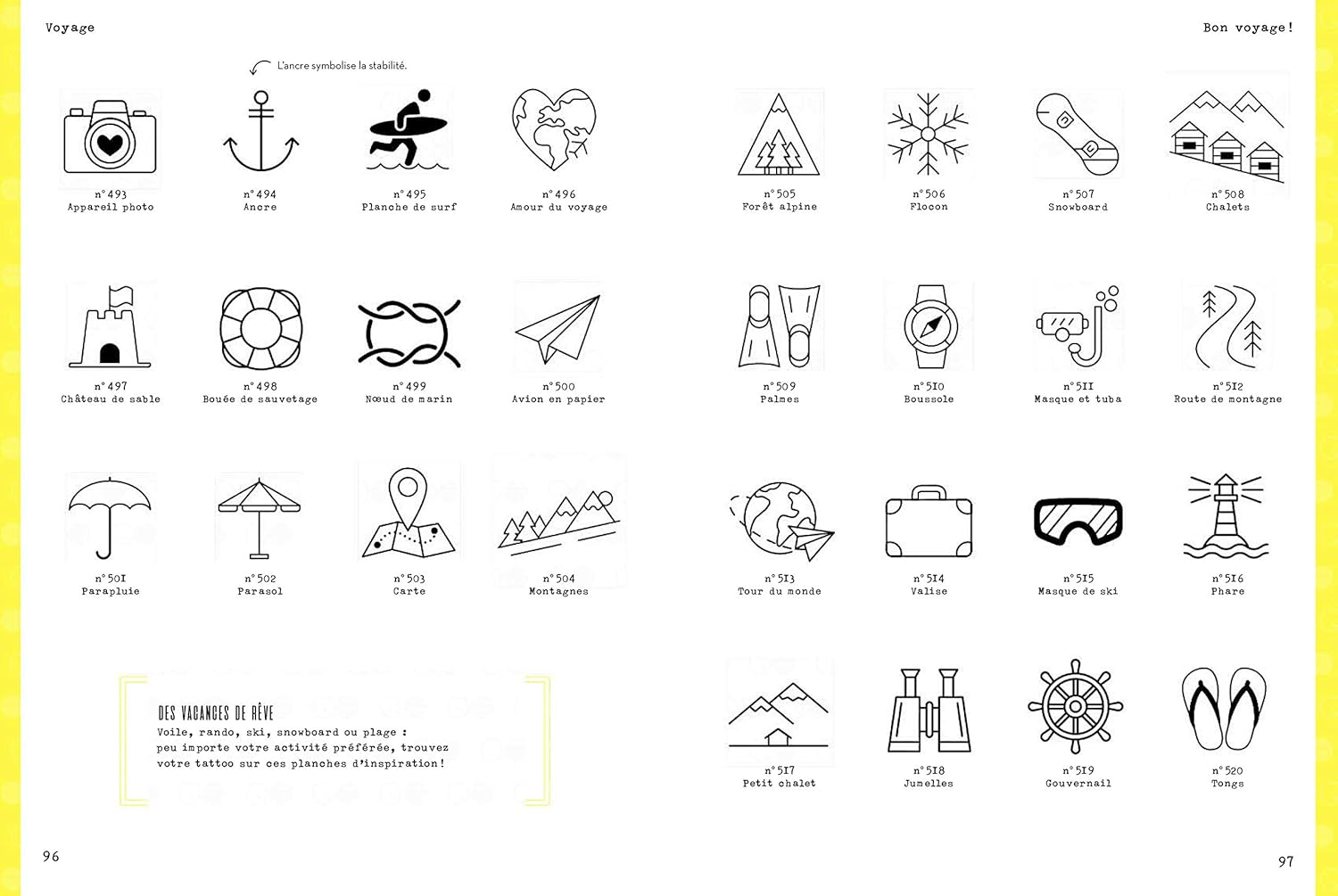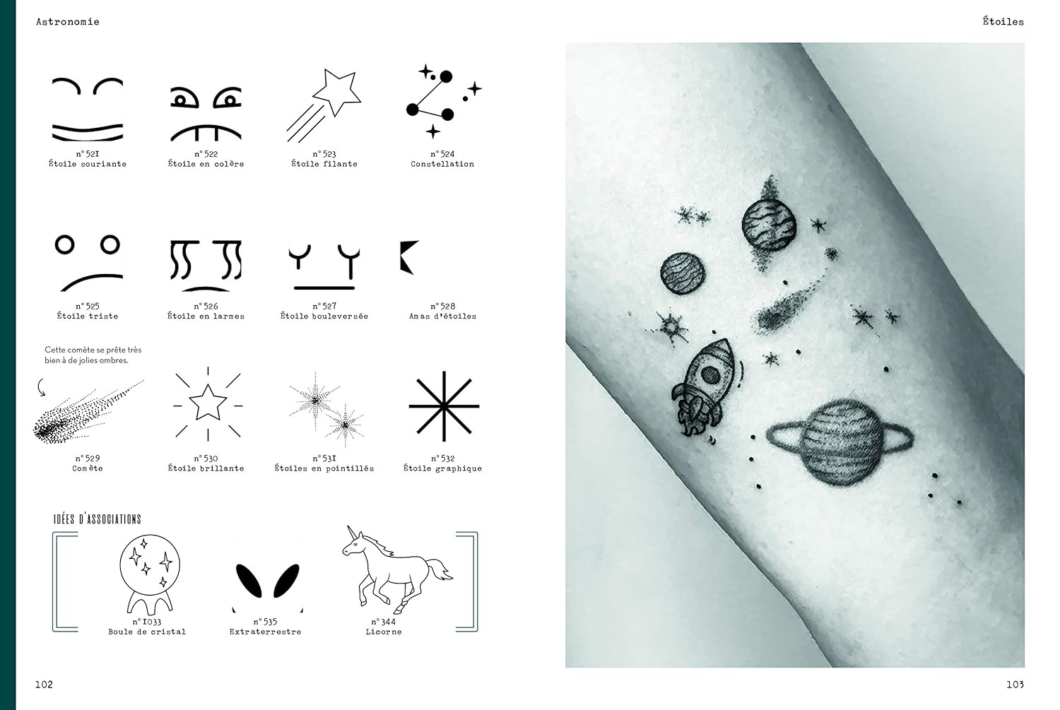 Cet ouvrage, tout autant destiné aux tatoueurs qu’aux (futurs) tatoués, compile plus de 1000 motifs, réalisés dans des styles variés. Classés par grandes thématiques, ces mini-tatouages sont tour à tour bucoliques, rock ou ésotériques.