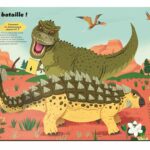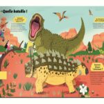 Un livre qui propose de se glisser dans la peau d’un paléontologue et de manipuler des os pour reconstituer le squelette d’un stégosaure. Des pop-up illustrent un duel de tricératops ou révèlent les prémices de l’ère glaciaire. Une grande page dépliante expose toutes les familles de dinosaures. Au détour des pages, une roue évolutive, des languettes à tirer, des rabats et d’autres surprises attendent les petits lecteurs.