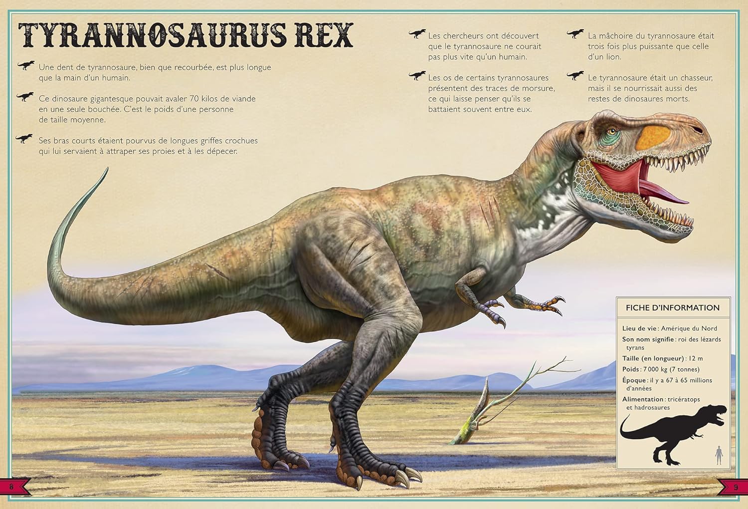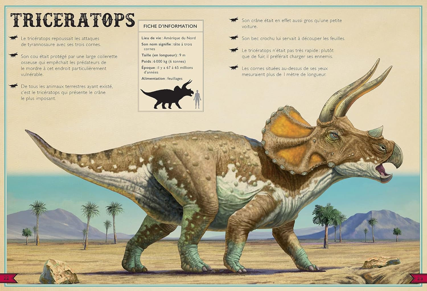 Ce livre se distingue par l’extrême précision avec laquelle chaque dinosaure est représenté : de magnifiques dessins en grand format qui émerveilleront petits et grands. Chaque représentation est accompagnée d’une fiche qui décrit l’habitat, le poids, le régime alimentaire du dinosaure, et plus encore. En prime, une échelle comparative donne une idée de la taille du dinosaure par rapport à l’homme. Coup de cœur garanti !