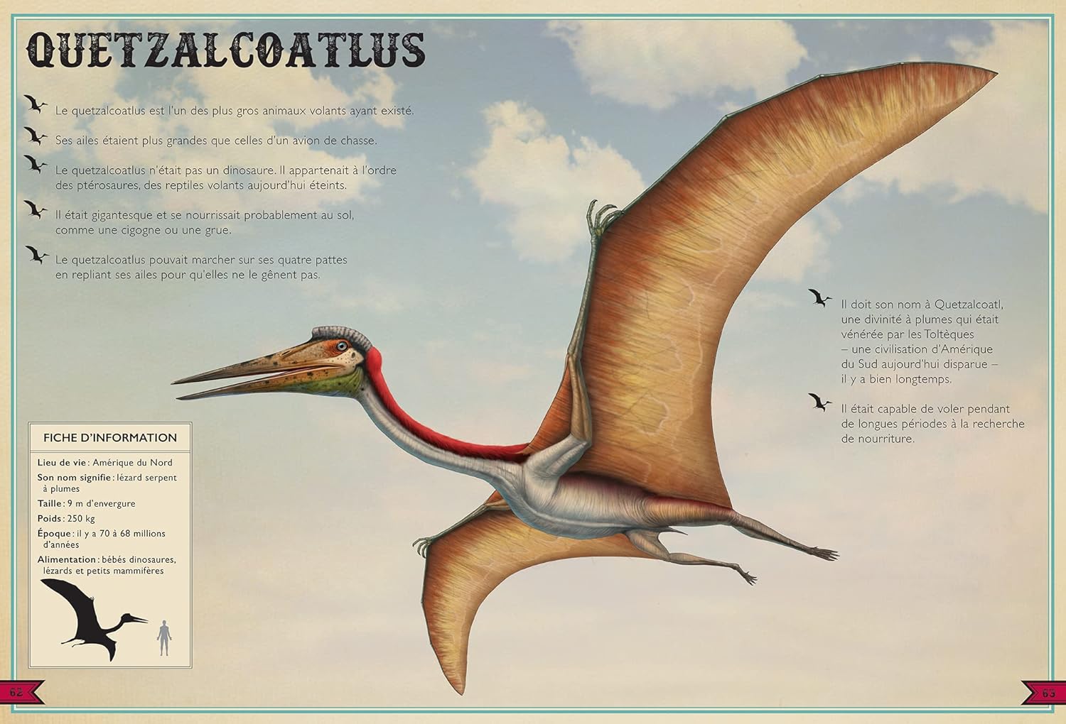 Découvrez le monde préhistorique comme jamais auparavant ! Ce livre regorge de créatures gigantesques qui régnaient sur Terre il y a des millions d’années. On y découvre la diversité biologique de l’époque, la faune et la flore qui partageaient l’habitat de ces géants. Un voyage étonnant à travers le temps à la rencontre des tyrannosaures, tricératops, ptéranodons et autres diplodocus.
