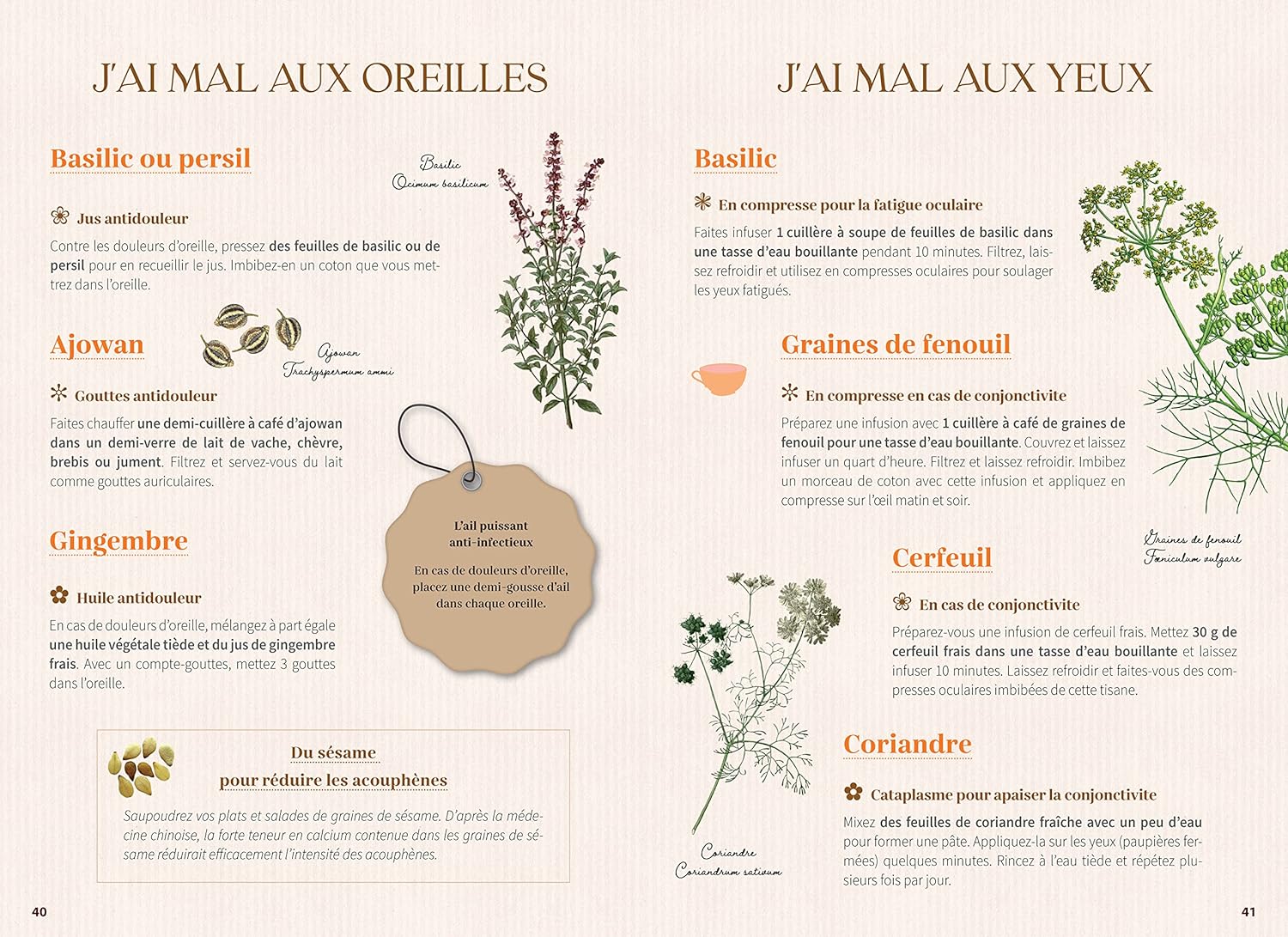 Chaque épice est accompagnée de conseils d’utilisation thérapeutique. Infusions, décoctions, poudres : vous apprendrez à les préparer efficacement. Un tableau synthétique relie épices et maux traités pour une consultation rapide.