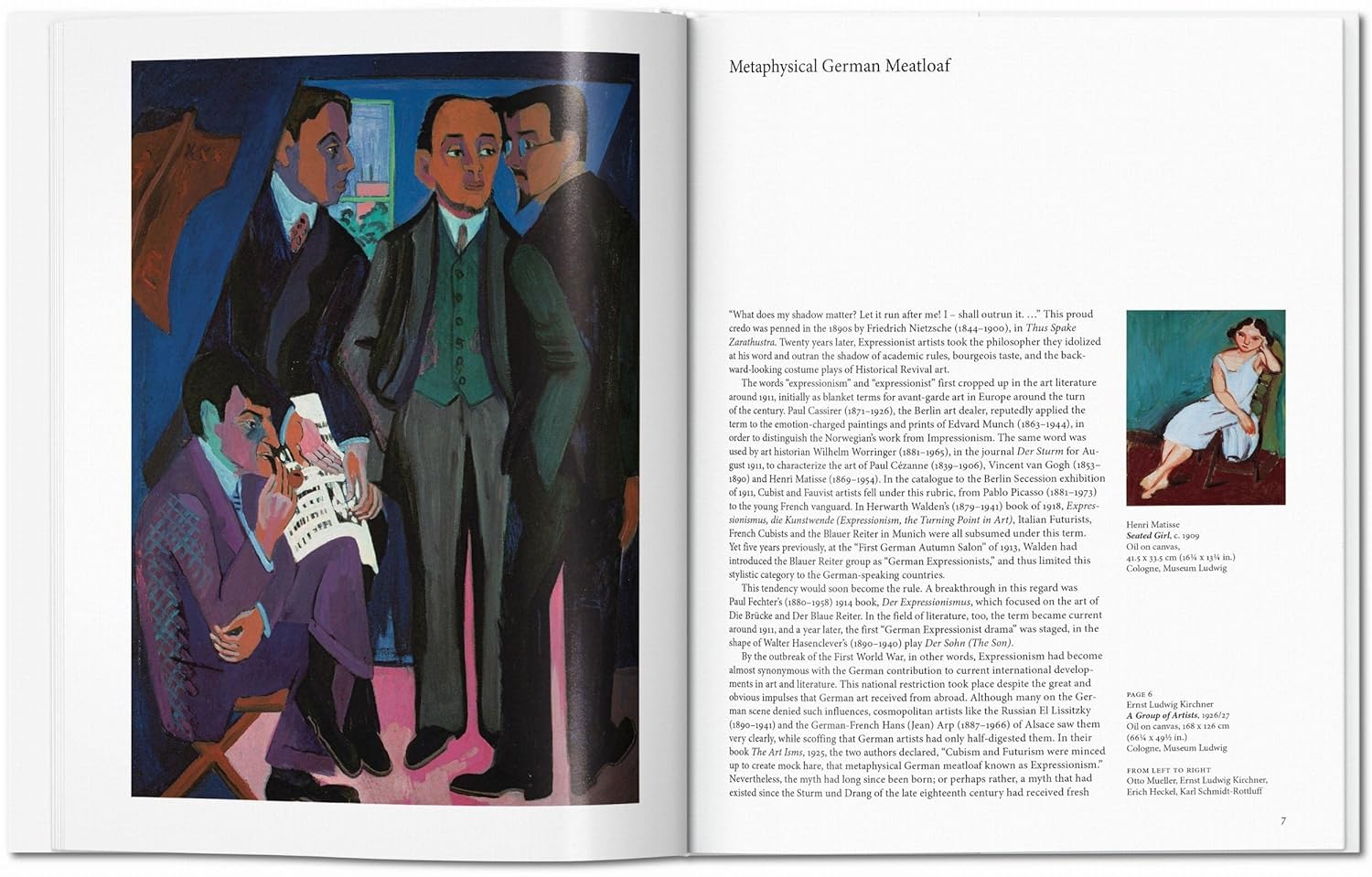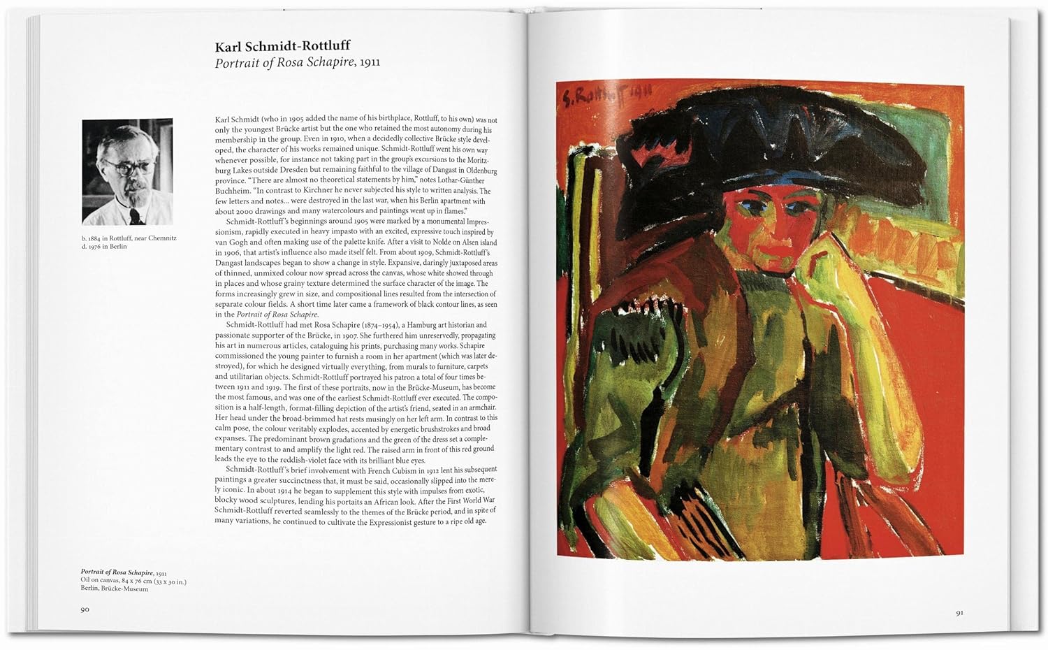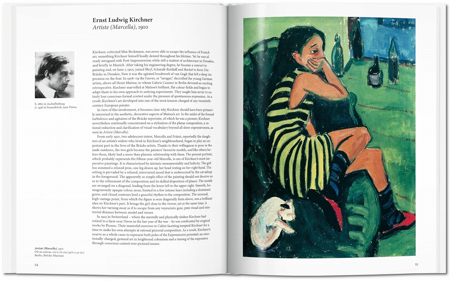 Parvenant à une clairvoyance critique au milieu de cette frénésie de couleurs et de distorsions, le livre aborde les collectifs d’artistes influents Die Brücke (« Le Pont ») et Der Blaue Reiter (« Le Cavalier bleu »), ainsi que leurs particularités locales à travers les centres artistiques de Berlin et Munich et leurs variantes en Rhénanie, au nord de l’Allemagne, et à Vienne.
