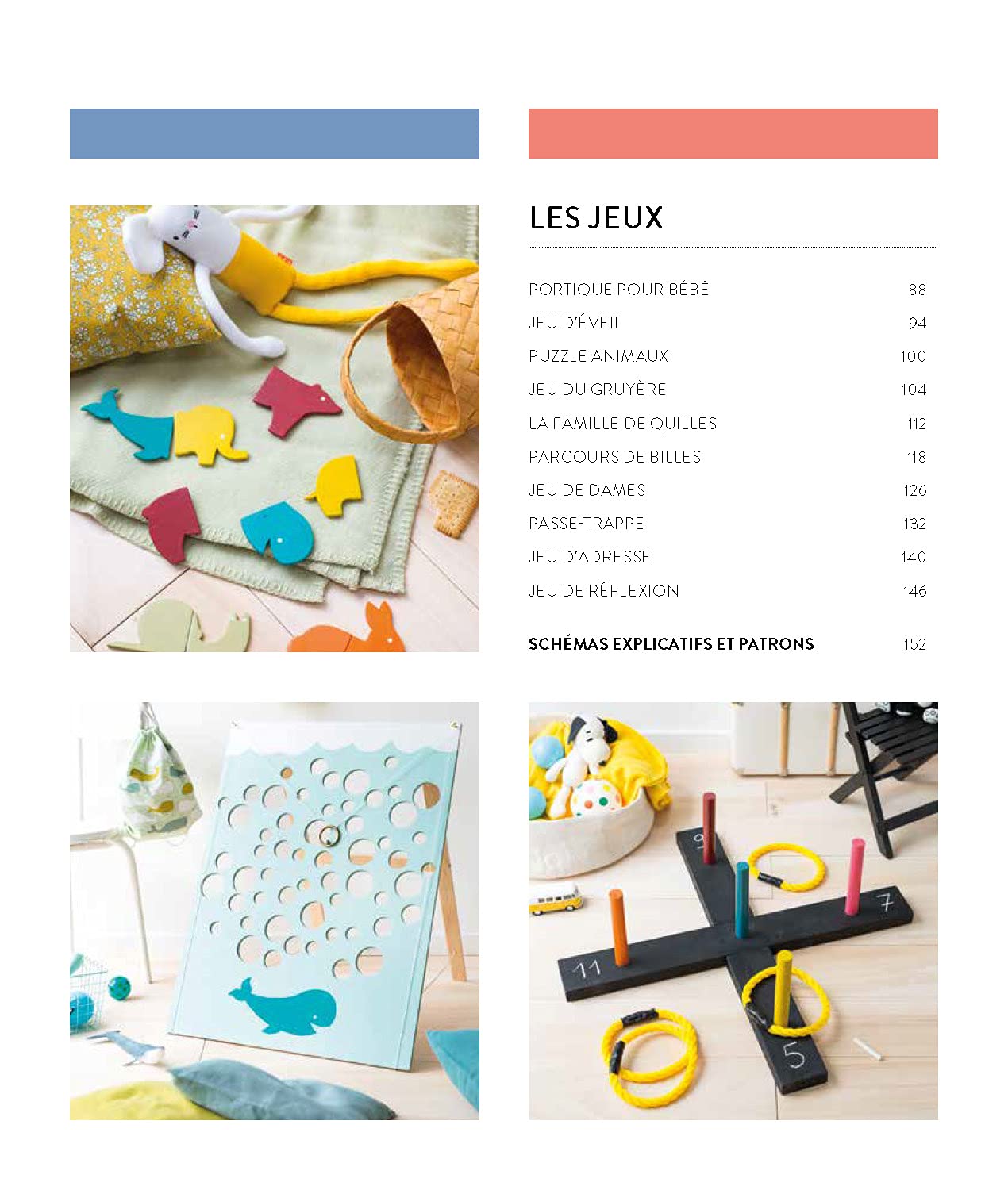 Dans ce livre, tous les classiques sont revisités : jouets d’éveil et d’imitation, jeux d’adresse, etc. Ces 20 projets au design moderne et joyeux sont accessibles aux bricoleurs débutants. Avec des schémas cotés et des explications étape par étape, vous obtiendrez un résultat impeccable et durable… Pour le plus grand bonheur des enfants !
