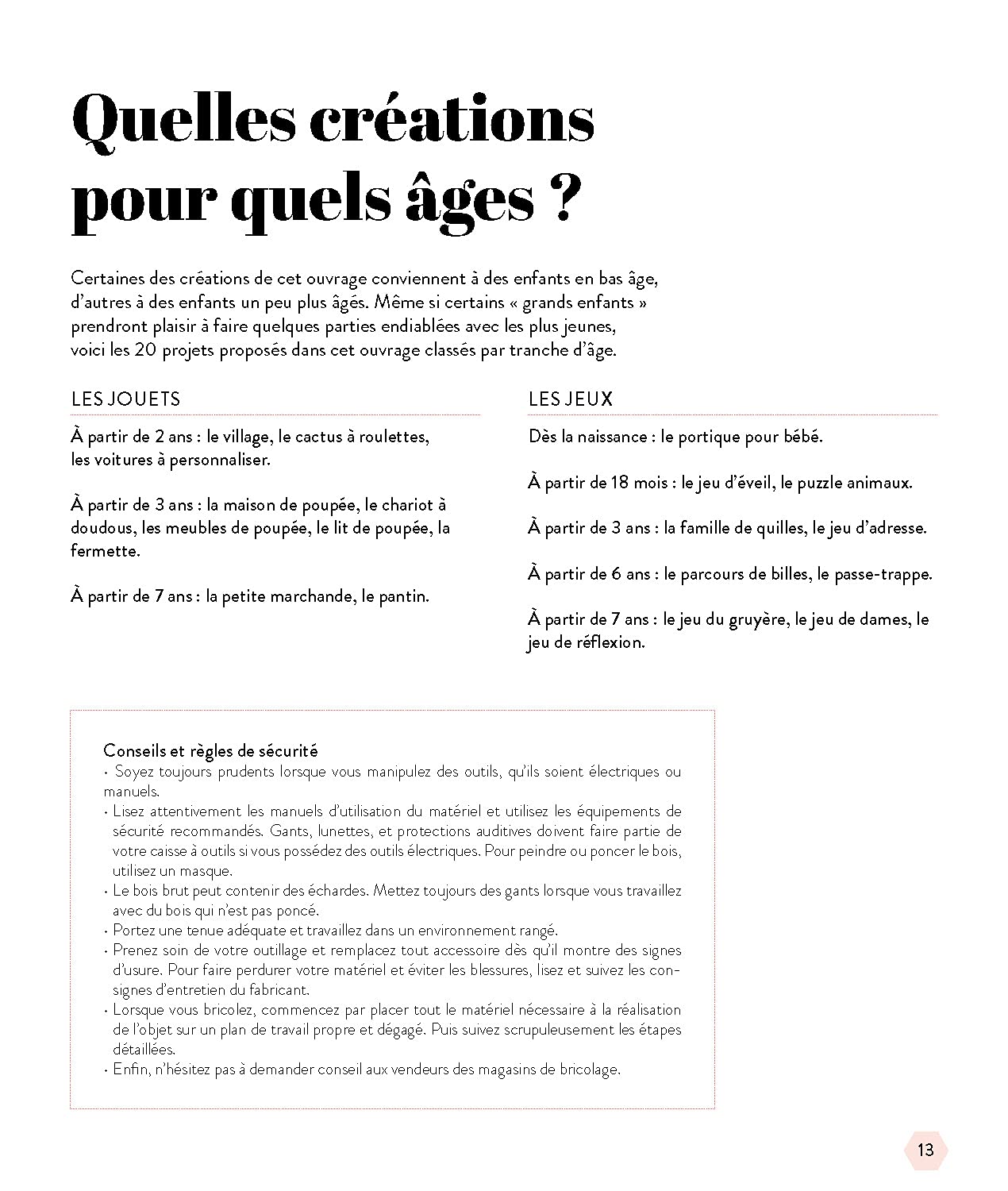 Que vous soyez simple amateur ou bricoleur plus expérimenté, vous trouverez dans ces manuels des modèles pour tous les niveaux, expliqués pas à pas. Chevaux à bascule, camions de pompiers et autres avions biplans raviront à coup sûr les enfants !